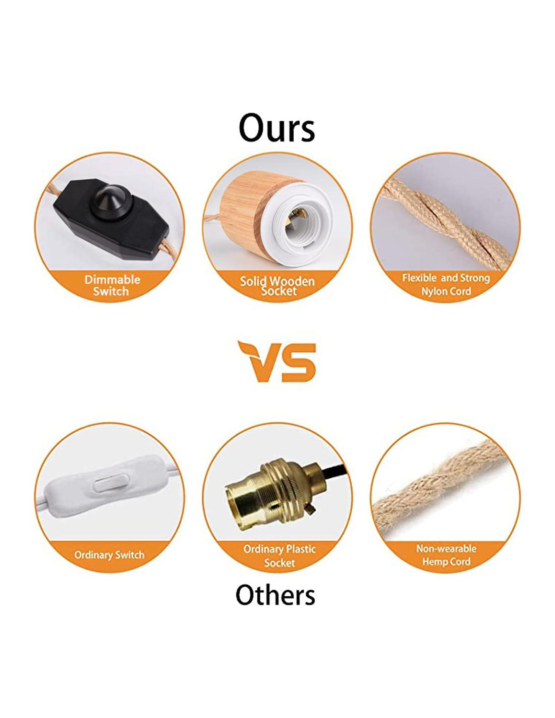 - Estilo Vintage Moderno El kit de luz colgante está hecho de cuerda de nylon de alta calidad y madera, que es más duradera que la cuerda de cáñamo sin romperse o separarse fácilmente. Su diseño vintage eleva tu estética, que combina bien con cualquier estilo y color de tu decoración. Perfecto en hogares tradicionales e industriales, aportando un aspecto de moda.