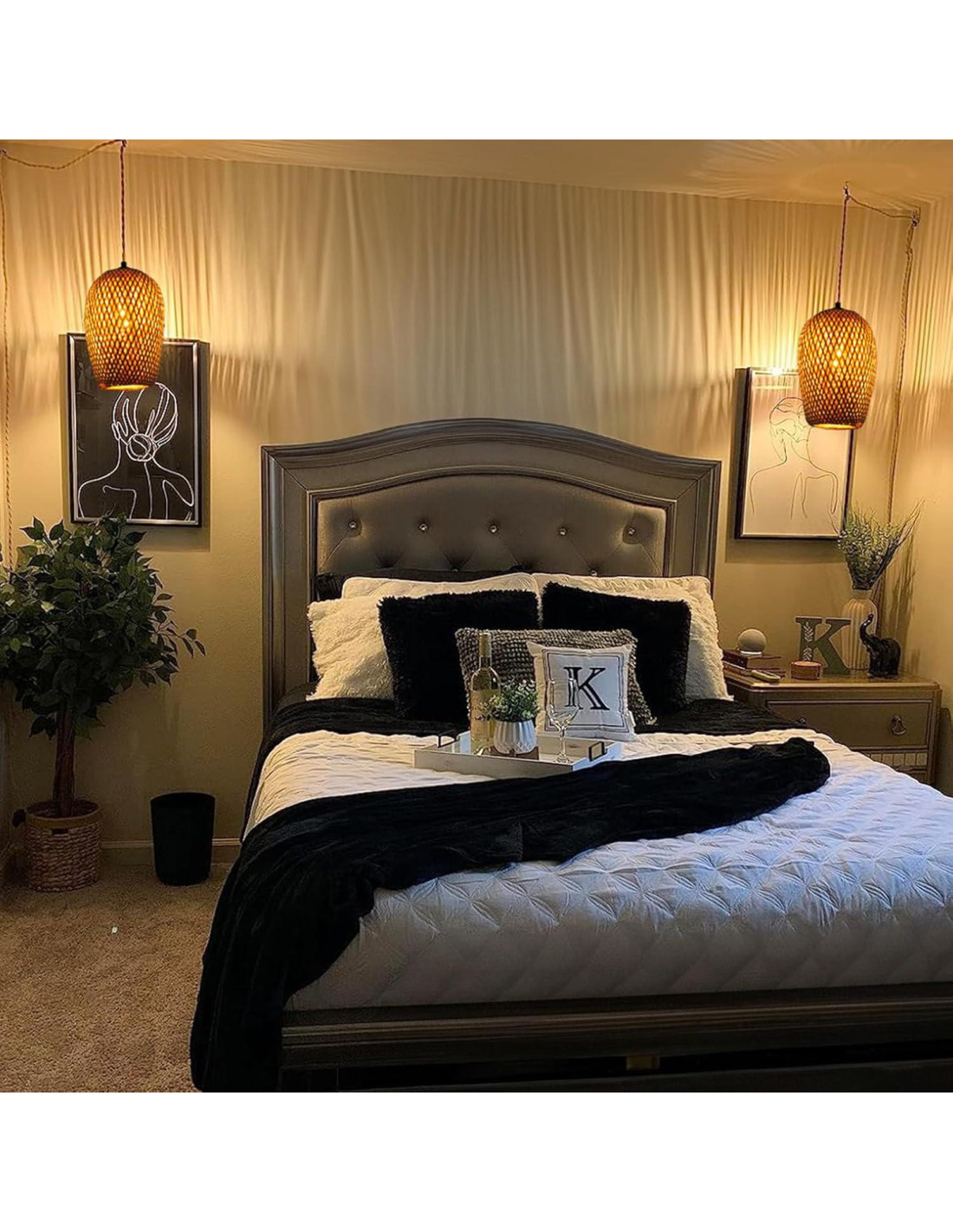- [Lámpara de Araña con Bambú Hecho a Mano] La pantalla de lámpara de bambú hecha a mano con diseño de doble capa combina estilos vintage y modernos, y complementa tu decoración interior y exterior. Esta lámpara de araña de ratán es la mejor opción para decorar tu hogar y también un regalo único y práctico para familiares y amigos.