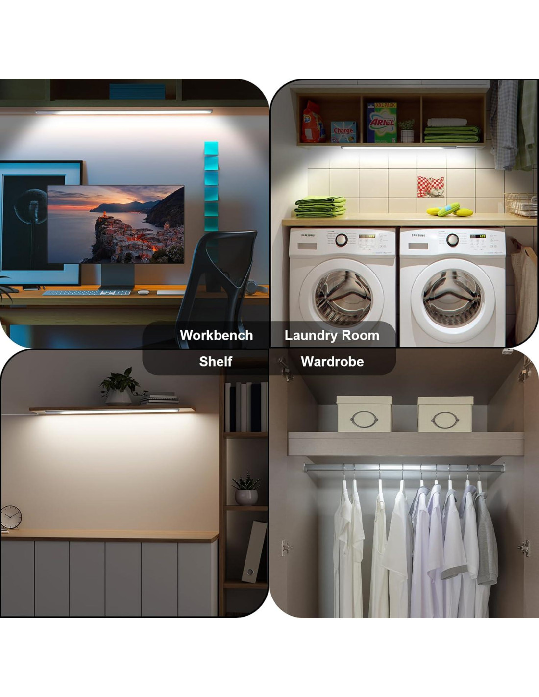 - Iluminación LED Brillante Bajo Gabinete - La barra de luz LED para mostrador crea una forma simple de actualizar la iluminación de tu hogar para gabinetes, armarios, escritorios, almacenamiento, estanterías, armarios, vitrinas, etc.