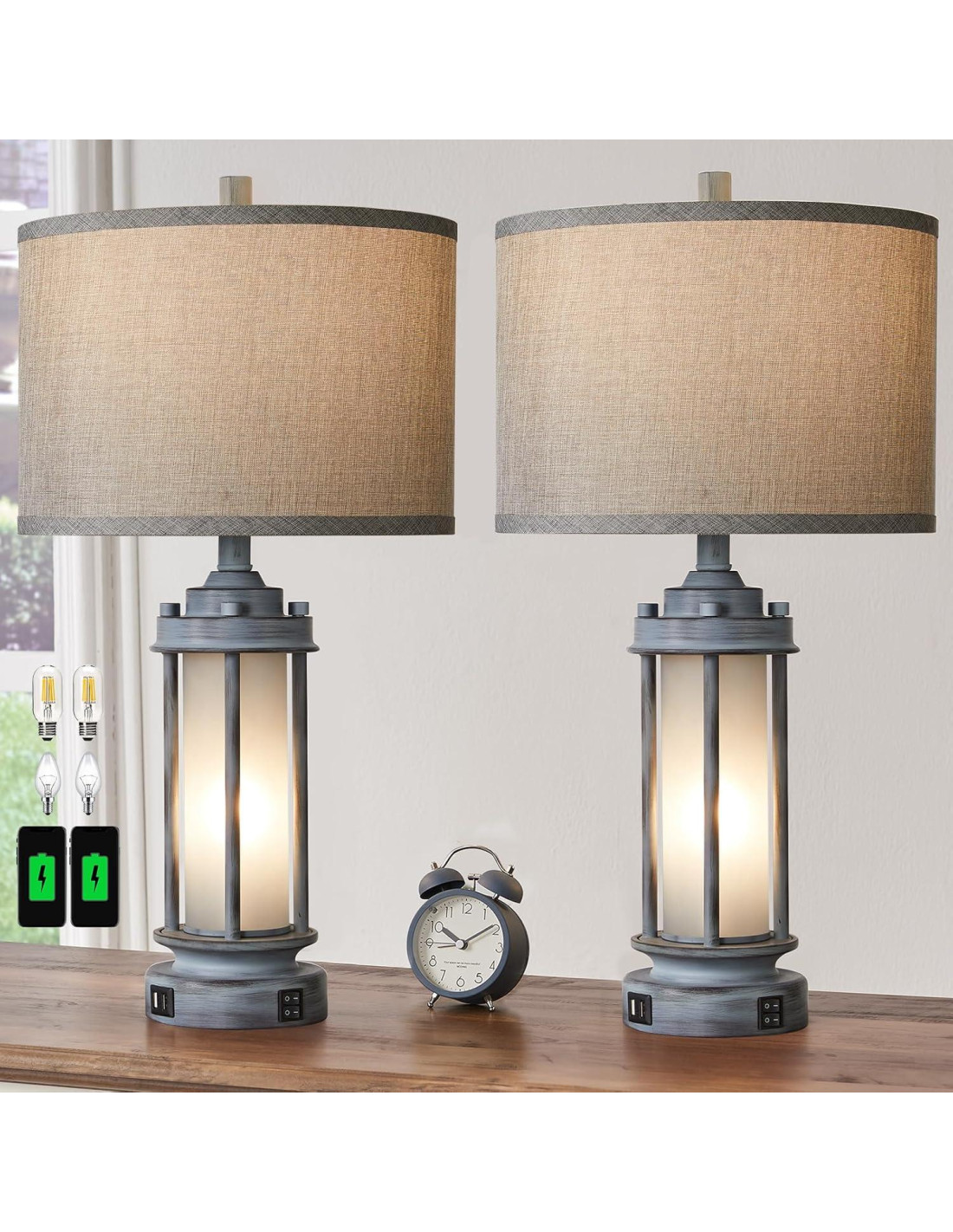- Diseño Vintage y Rústico: El juego de 2 lámparas de mesa para dormitorio rústico está hecho de un marco de metal verde cobre de alta calidad y vidrio esmerilado. El acabado de metal antiguo combina con la pantalla de lino gris para un aspecto impresionante, añadiendo un toque de calidez y elegancia a tu hogar. Un gran acento para estilos de decoración de granja, vintage, clásico, tradicional y muchos otros.