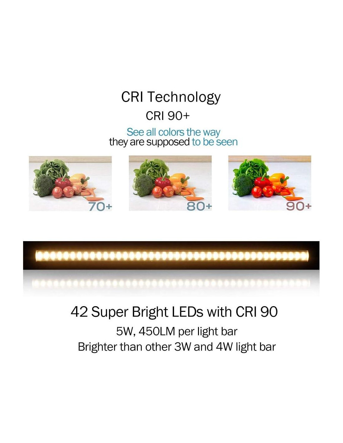 - Eficiencia energética. Nuestra iluminación bajo mostrador de 5W puede reemplazar luces de gabinete fluorescentes de 12W, proporcionando una alta luminosidad de 450 lm y ahorrando un 50% en costos de energía. Además, cuenta con 42 chips LED super brillantes, CRI>90, sin deslumbramiento, sin parpadeo, haciendo que los colores se vean vívidos y cómodos.
