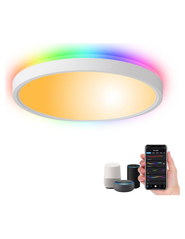 - [Aplicación Inteligente y Control por Voz] Controla 16 millones de colores de retroiluminación RGB y luz frontal blanca ajustable (2700K-6500K) a través de Alexa, Google Assistant o la aplicación Surplife. Con brillo regulable del 1%-100% hasta 2700 lúmenes, personaliza la iluminación para noches de cine, enfoque en el trabajo o rutinas de sueño de bebés. Gestiona tu iluminación de forma remota desde cualquier lugar - perfecto para chequeos de seguridad mientras viajas o ajustes de ambiente en casa.