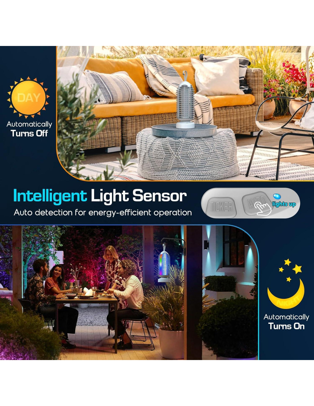 - Asesino de Insectos Recargable por USB-C con Sensor Inteligente: Este asesino de insectos voladores se carga completamente en solo 4 horas a través de USB-C y ofrece de 7 a 18 horas de uso. El sensor de luz incorporado permite la operación automática al anochecer y el apagado al amanecer, maximizando la eficiencia energética. Ya sea como asesino de insectos interior o asesino de mosquitos para camping, siempre está listo cuando lo necesitas.