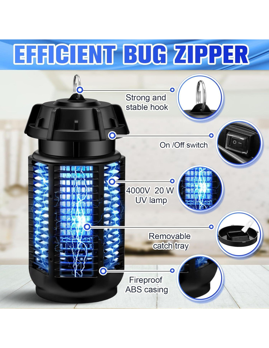 - Útil: este asesino de mosquitos utiliza una rejilla de 4000V y se activará una vez que un mosquito se acerque; Equipado con una bombilla de 20W con luz azul-violeta incorporada para atraer insectos en la oscuridad, asegurando eficiencia nocturna; Es un asesino de mosquitos multifuncional para interiores y exteriores, efectivo inmediatamente después de enchufar la energía