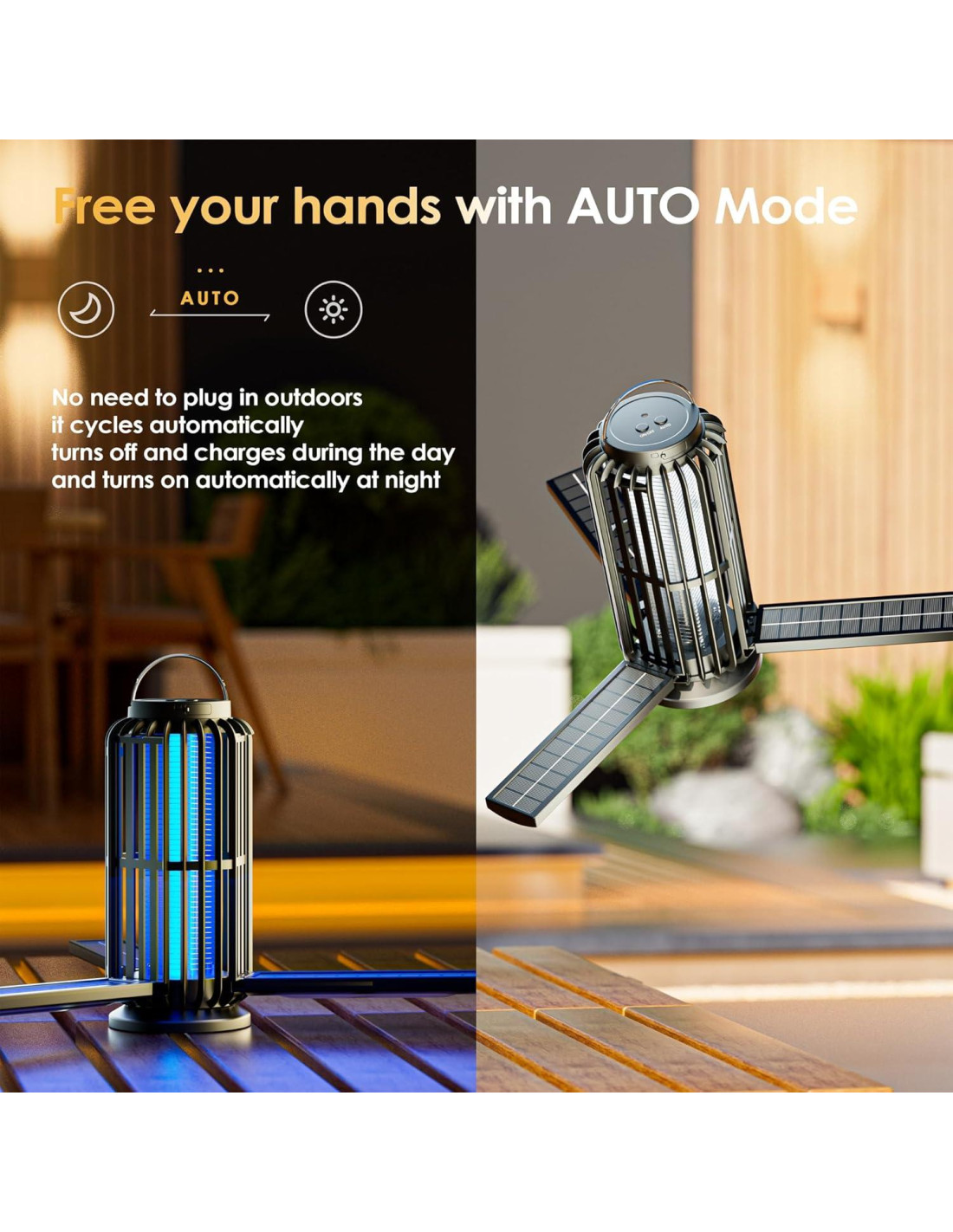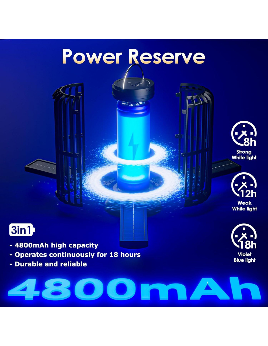 - Diseño de Panel Solar Triple Supera a los competidores con 3 veces la potencia de carga! Nuestra matriz solar de paneles triples expande la recolección de luz solar 3 veces más rápido que los zapper de panel único. Se carga completamente en 4-5 horas (0-95% en condiciones ideales) frente a más de 12 horas para modelos estándar. Nunca te pierdas una noche de caza de insectos con reservas de energía solar continuas.