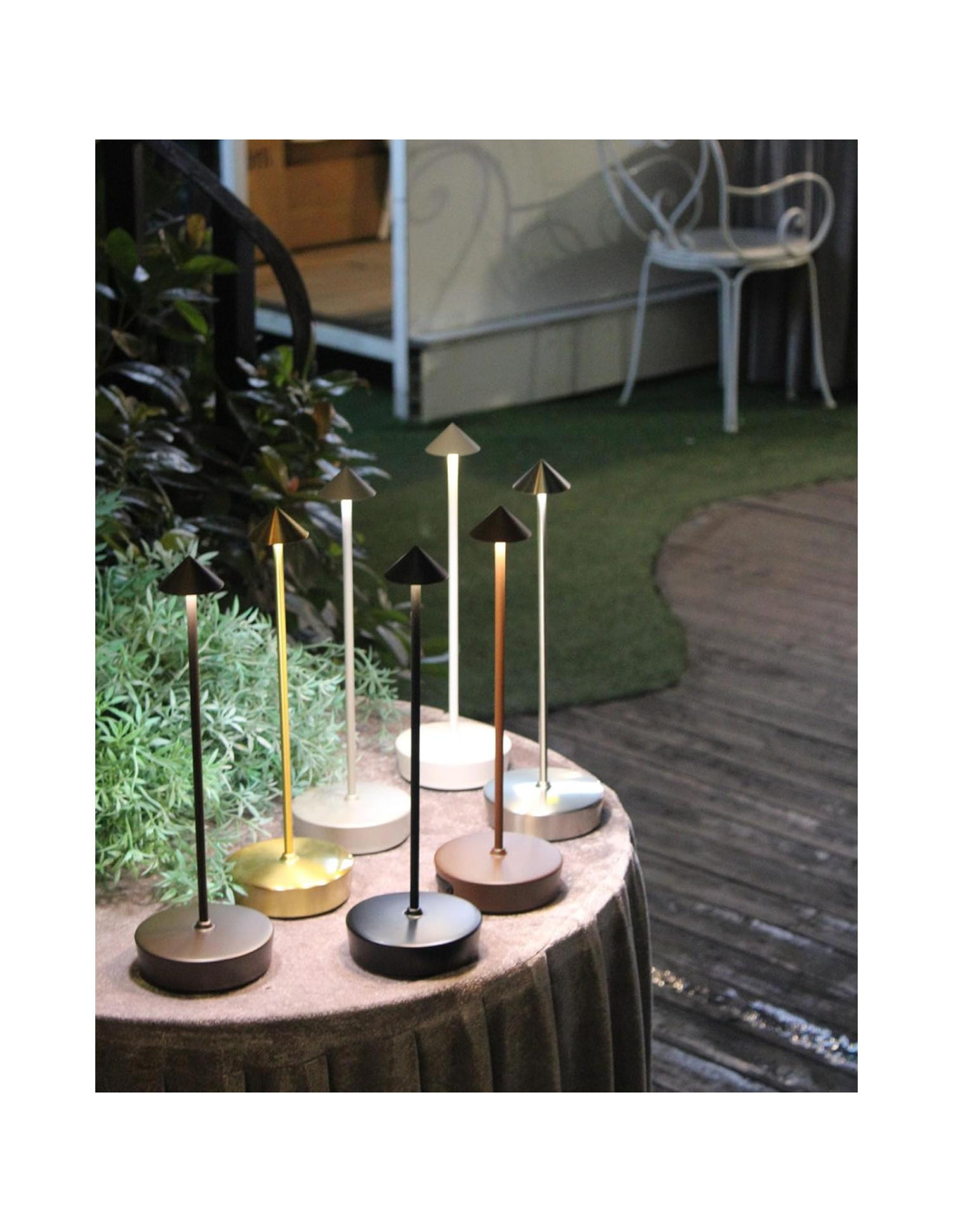 - Luces de Mesa para Exteriores IP54 Impermeables El diseño del tapón de silicona impermeable en el puerto de carga de la base hace que la lámpara de mesa sea menos susceptible a la entrada de agua y polvo, lo que le permite disfrutar de la diversión de la iluminación de luz en una calidad superior cuando utiliza la lámpara de mesa al aire libre.