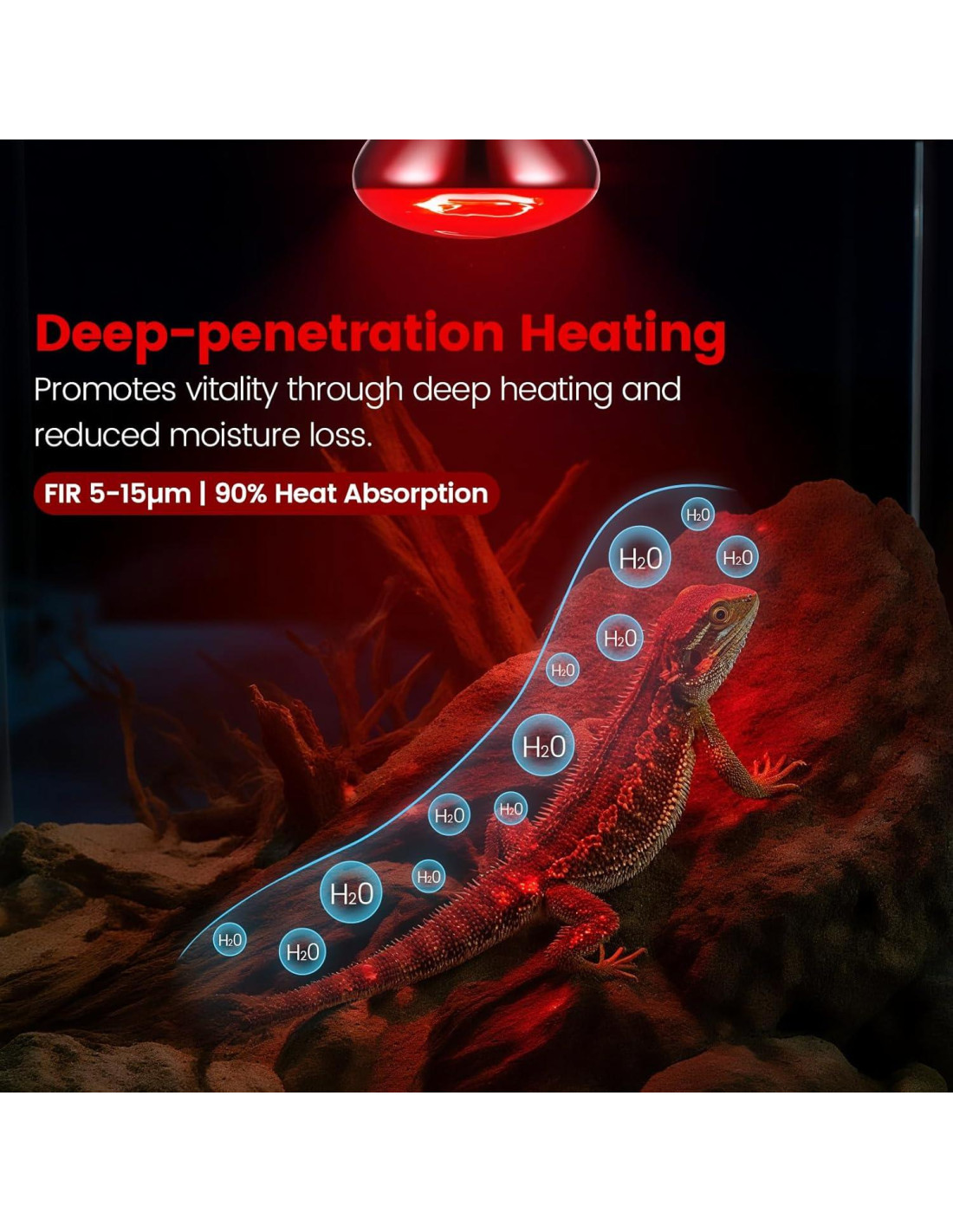 - Función: Esta lámpara de calefacción infrarroja simula las condiciones cálidas de los hábitats naturales de reptiles y anfibios, promueve su apetito, reproducción y comportamientos naturales, y asegura su crecimiento saludable.