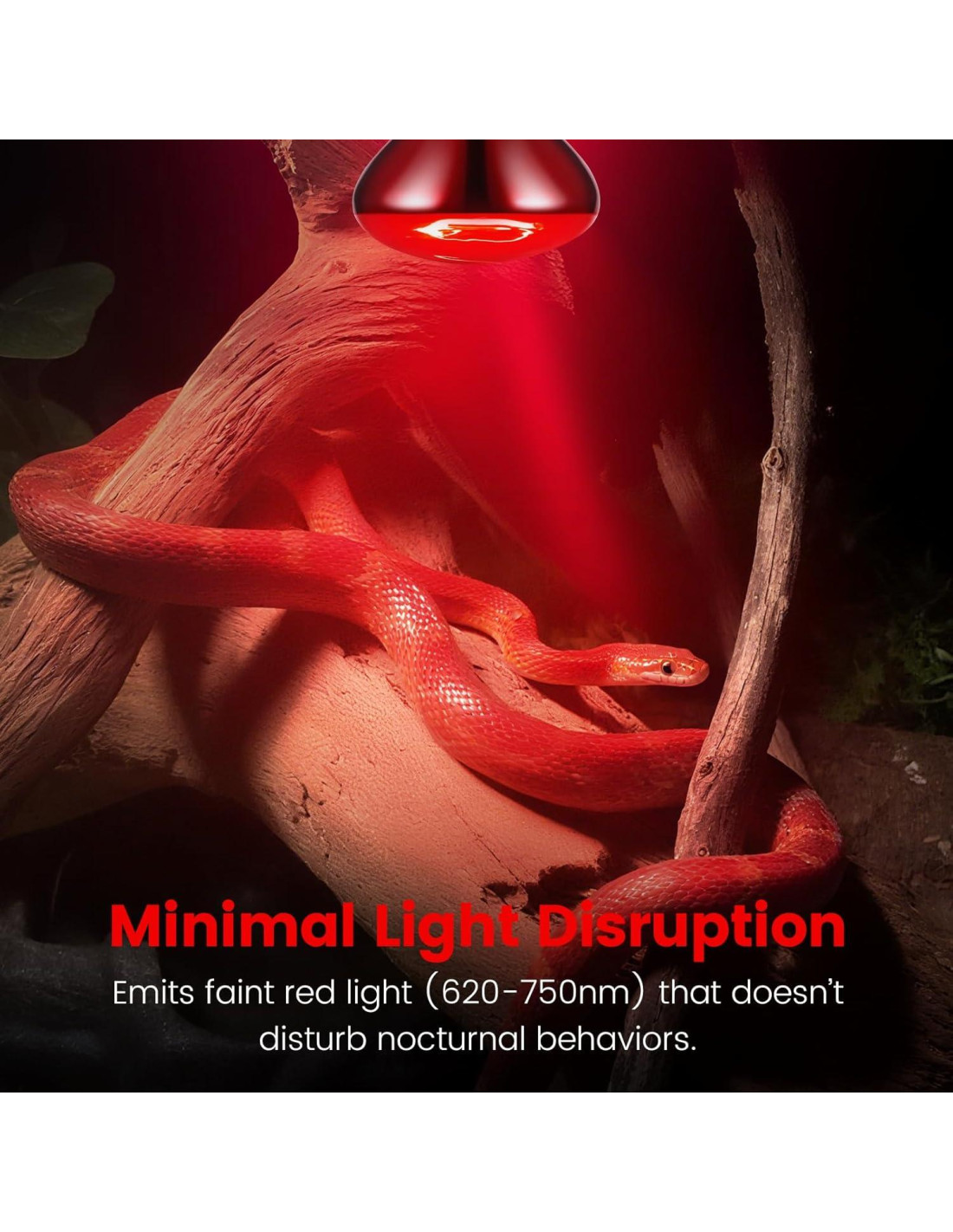 - Iluminación Suave: La suave luz roja previene cualquier irritación en los ojos de los reptiles, permitiéndoles relajarse y descansar más efectivamente por la noche. Esta luz ayuda a mantener los ritmos biológicos de los reptiles, facilitando que se duerman y permanezcan en un estado profundo de descanso durante la noche. Además, proporciona calor esencial, creando un ambiente de descanso acogedor y tranquilo para estas criaturas.