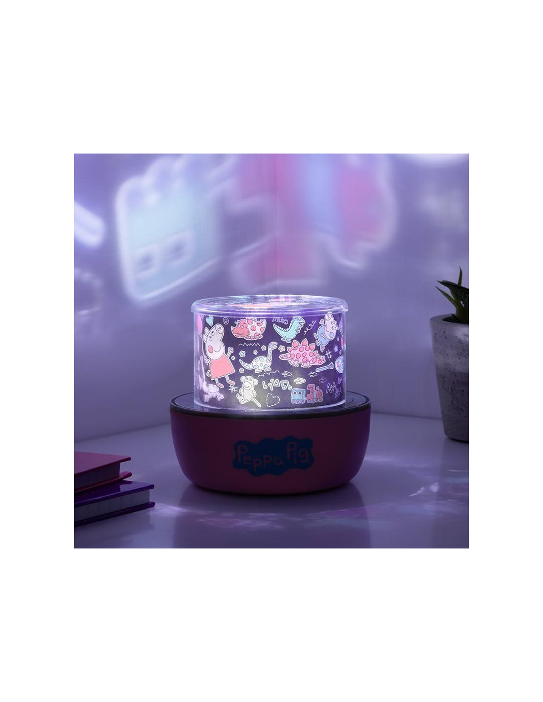 Dale vida a un personaje querido en la habitación de tu hijo con esta divertida Luz Proyector Peppa Pig. Con una altura de 12.2 cm (4.8 pulgadas), esta luz proyectora viene con dos escenas temáticas de Peppa y amigos intercambiables para proyectar en las paredes y el techo de la habitación de tu hijo. Con 4 modos de luz y sonidos del mundo, crea una atmósfera relajante perfecta para la hora de dormir. Alimentala con un cable USB (incluido) o 3 pilas AA (no incluidas). Esta Luz Proyector Peppa Pig es una adición encantadora a cualquier rutina de dormir.
