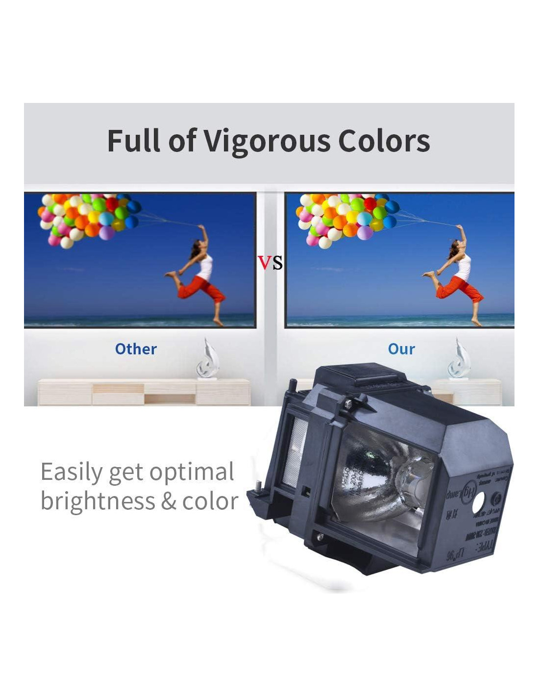 - Lámpara de reemplazo compatible V13H010L96 2150 funciona para los siguientes modelos: proyector de cine en casa 2150 Proyector de cine en casa 2100 Proyector de Cine en Casa 1060 660 760hd, vs250 vs350 vs355 ex9210 ex9220 ex3260 ex5260 ex7260, eh-tw650 eh-tw610 eh-tw5650 eh-tw5600 eh-tw5400, powerlite x39 s39 w39 107 108 109w 1266 1286 2042 2142w 2247u 970 980w 990u, eb-108 eb-2042 eb-2142W eb-2247U eb-960W eb-970 eb-980W eb-990U eb-S05 eb-S39 eb-S41 eb-U05 eb-U42 eb-W05 eb-W39 eb-W42 eb-X05 eb-X39 eb-X41