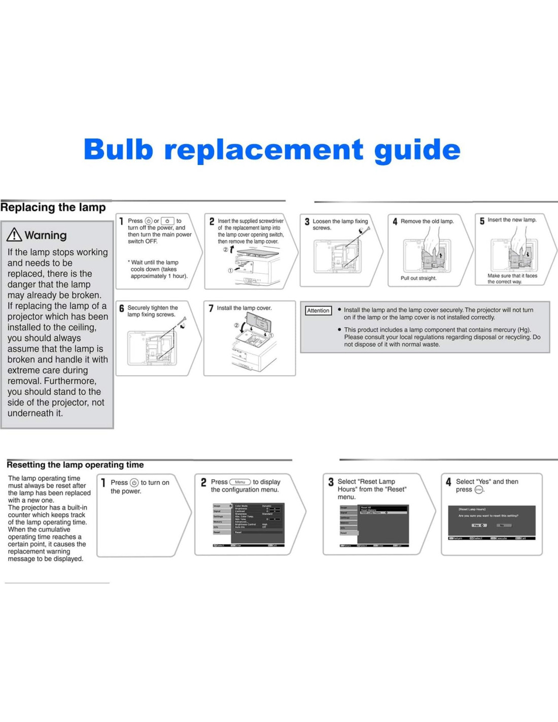 - Instalación y Seguridad: Encontrará que es bastante fácil instalarlo en su proyector como las formas en que está sacando su lámpara vieja. Tenga cuidado con el conector, asegúrese de que esté bien conectado. No es eléctrico, apague su proyector cuando lo instale