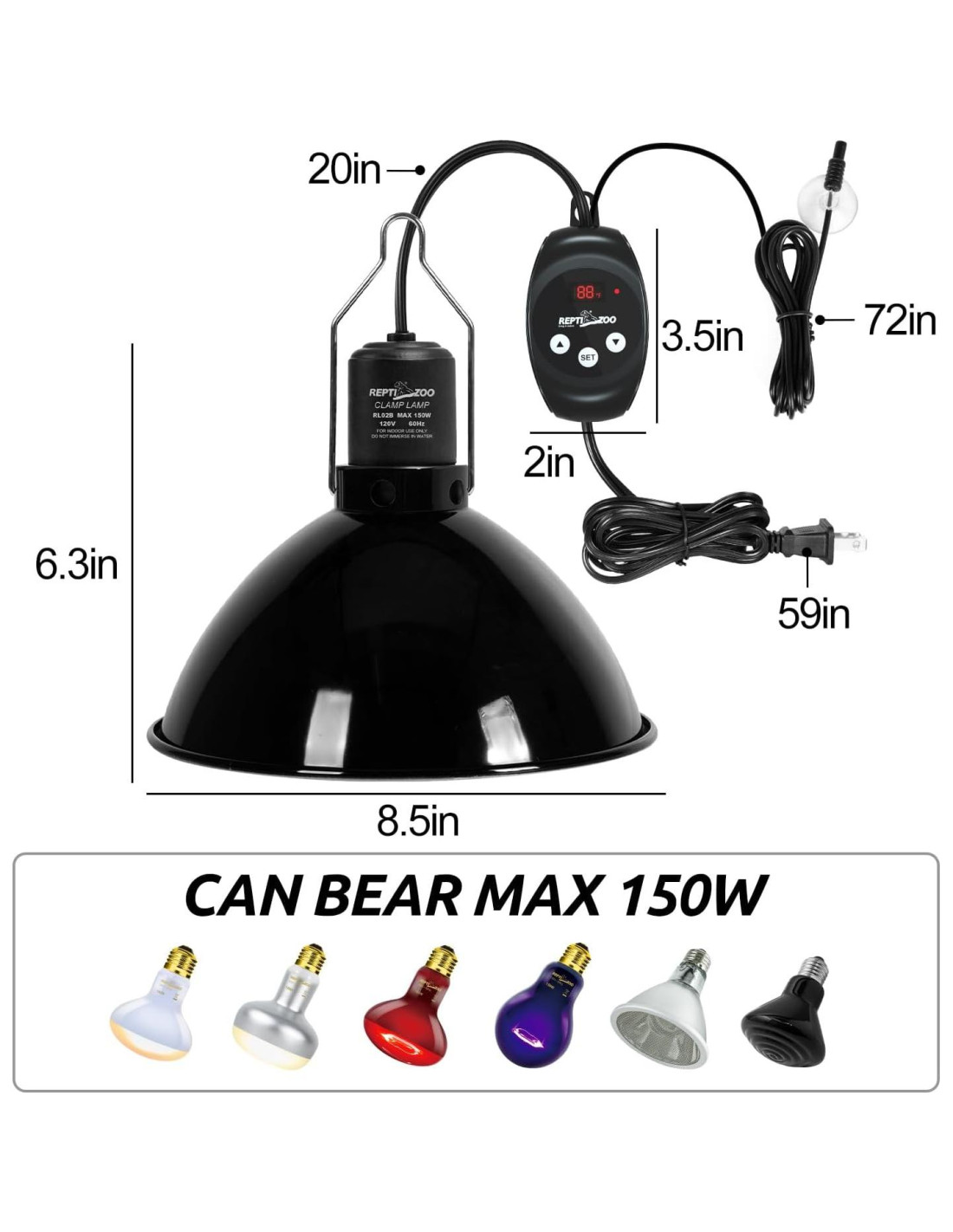 - Gran Valor: La lámpara de reptiles REPTIZOO con termostato regulable es excelente para ayudarte a crear un rango de temperatura adecuado para tus mascotas. La lámpara de reptiles está certificada por ETL, aplica casquillo de lámpara de cerámica E26, puede soportar un máximo de 150W.