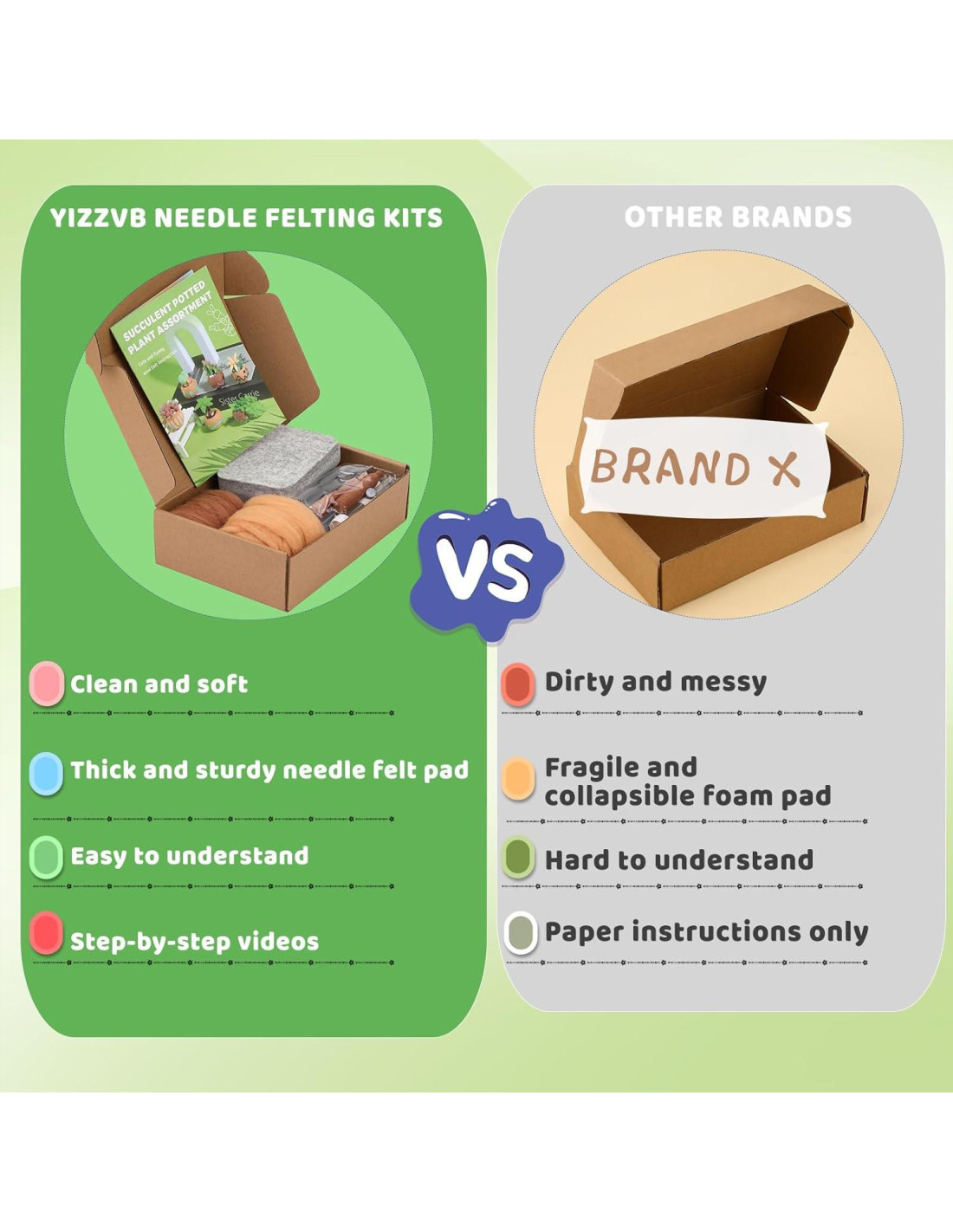 - Kit de Fieltro para Principiantes: En nuestro kit de fieltro de suculentas hemos proporcionado instrucciones muy detalladas para el fieltro de lana, por lo que puedes hacer fácilmente tus productos de fieltro de lana favoritos. La herramienta con mango de madera es ergonómicamente cómoda y fácil de instalar y quitar.