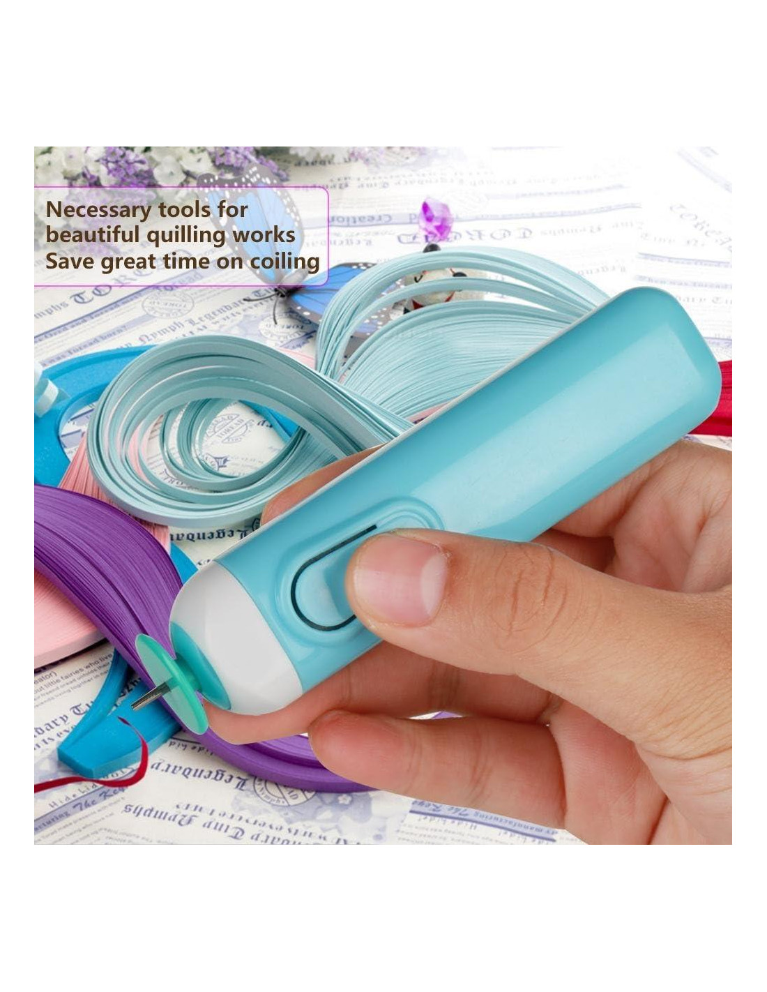 - Este bolígrafo eléctrico de quilling de papel adopta un diseño único de ranura en forma de V, que puede hacer que sea más conveniente sacar los rollos de papel.