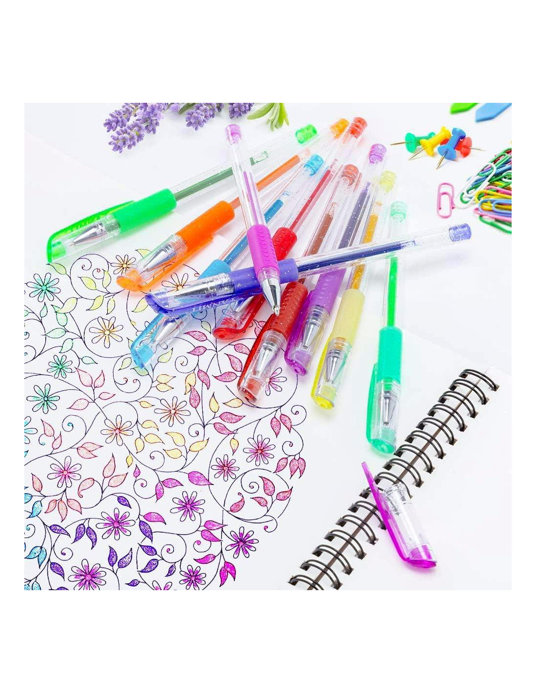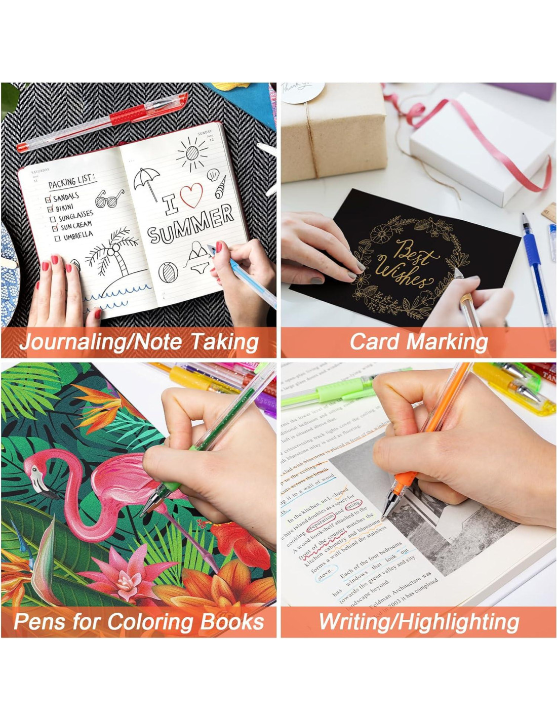 - 36 Bolígrafos de Gel de Calidad Premium y Colores Vibrantes: Incluyendo 12 bolígrafos de brillo, 10 bolígrafos metálicos, 7 bolígrafos neón, 6 bolígrafos pastel, 1 bolígrafo clásico. 40% más tinta para una larga duración, te hará sentir como un artista profesional.