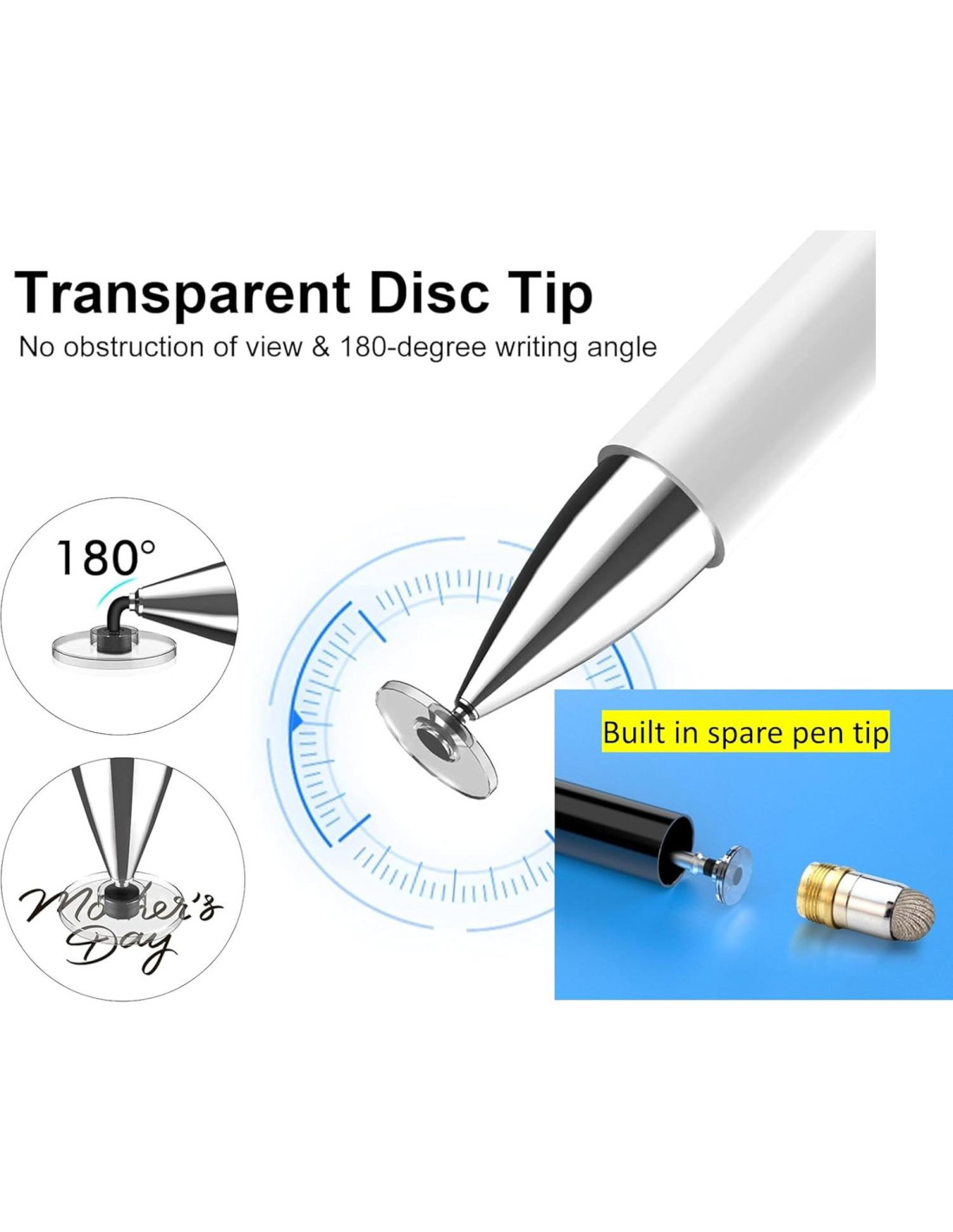 - [Alta Precisión y Alta Sensibilidad] el stylus adopta una punta de disco transparente flexible que puede ajustarse flexiblemente a la pantalla sin dejar líneas desconectadas en tu tablet o teléfono, proporcionando mejor flexibilidad y precisión, permitiéndote ver exactamente dónde está la marca y dando un punto preciso, mientras que la punta de goma y la punta de disco pueden ofrecerte dos experiencias táctiles diferentes.