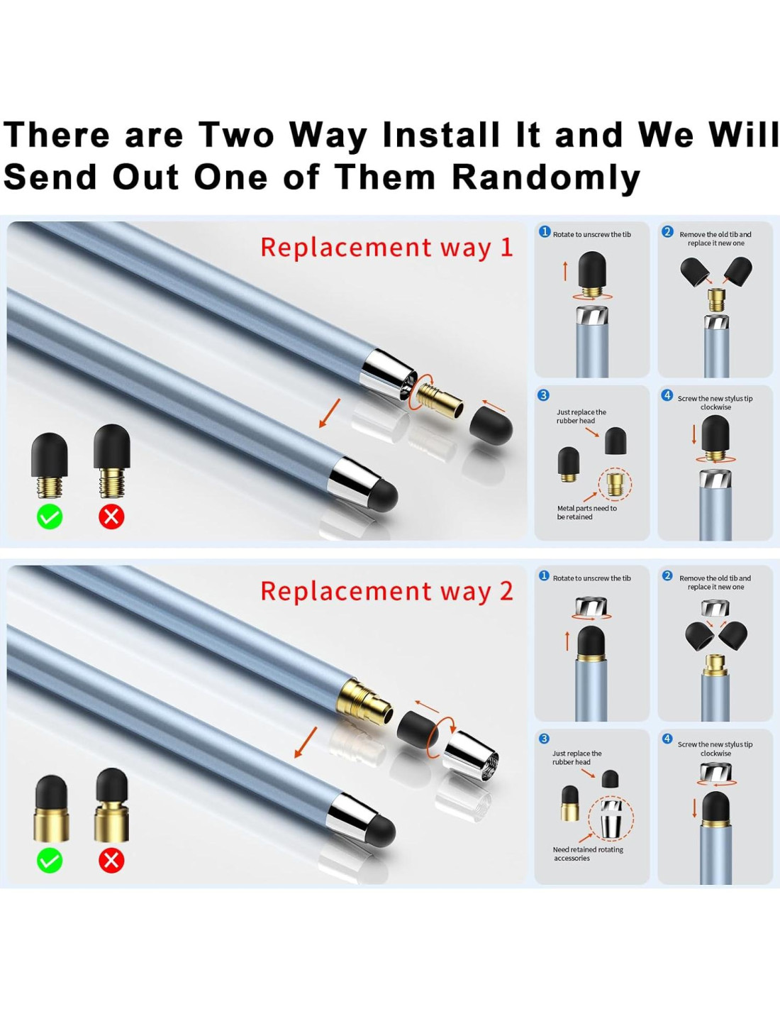 - [Juego de Bolígrafo Stylus] Recibirás 10 bolígrafos stylus de diferentes colores y 10 puntas de bolígrafo de goma reemplazables de 0.27 pulgadas (0,68 cm), 10 puntas de 0.21 pulgadas (0,53 cm) en un paquete. Si tienes alguna pregunta sobre el bolígrafo stylus para pantalla táctil, no dudes en contactar a nuestro equipo de servicio al cliente, lo resolveremos para ti lo antes posible.