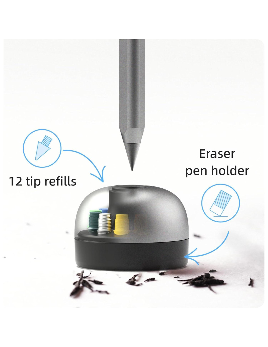 - Nibs de Colores NeoStand: incluye 12 Nibs Reemplazables y Base de Borrador, Accesorio Perfecto para NeoPencil, Organizador de Escritorio Estiloso y Funcional