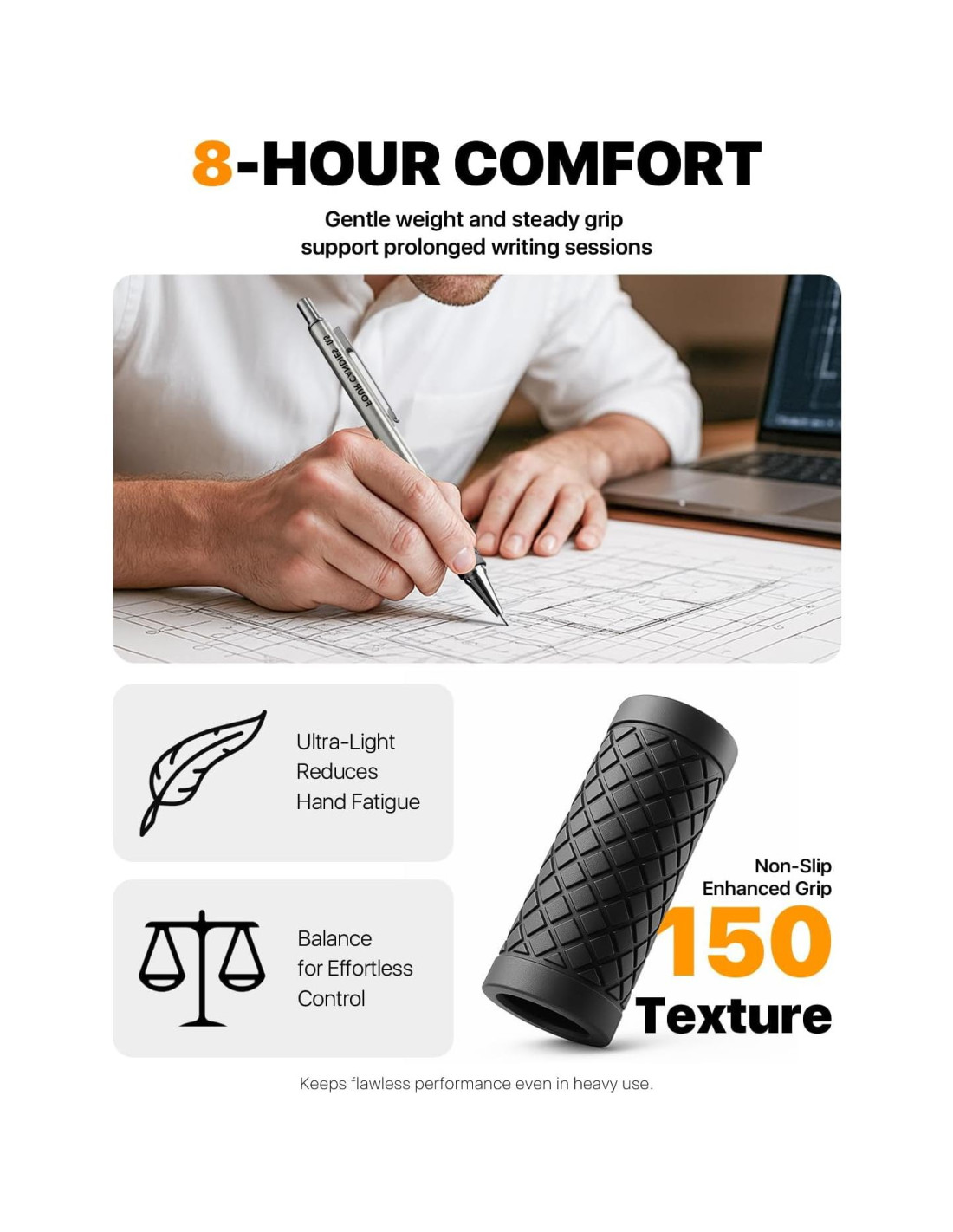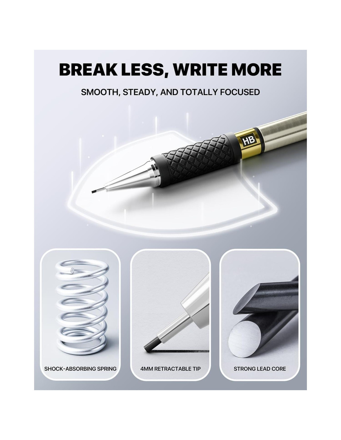 - Cuerpo de Lápiz de Metal y Agarre de Goma: El cuerpo de metal proporciona un equilibrio de peso ideal al sostener; Te ayuda a terminar la tarea de escritura o dibujo de manera eficiente