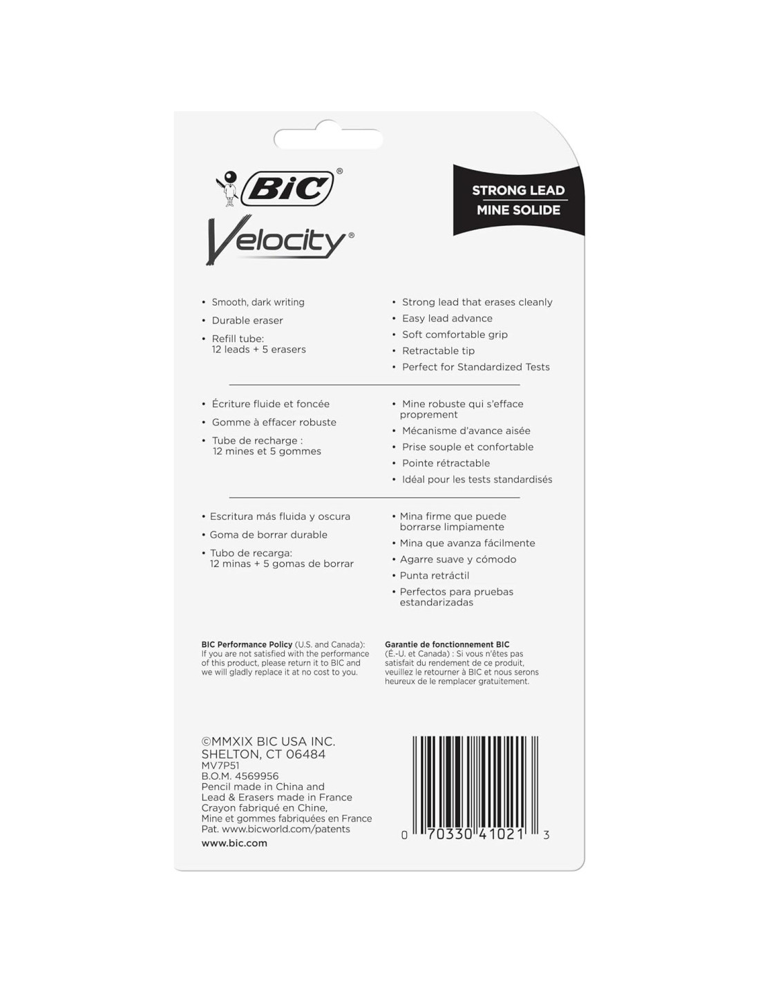 Experimenta una escritura suave y oscura con los Lápices Mecánicos BIC Velocity Strong Lead con Borradores. Estos lápices mecánicos de 0.9mm tienen una punta gruesa que es ideal para una variedad de actividades de escritura diarias. La mina resistente no mancha y se borra limpiamente, por lo que tu trabajo se ve ordenado y profesional. Convenientes y confiables, los Lápices Mecánicos BIC Número 2 de 0.9 mm están siempre listos y nunca necesitan afilarse; para avanzar la mina del lápiz, simplemente presiona el borrador incorporado. Estos lápices BIC tienen un aspecto sofisticado y moderno, y sus clips coloridos se adhieren fácilmente a bolsillos, cuadernos y más. La marca de lápices mecánicos número 1 en los Estados Unidos, BIC ofrece un rendimiento y un valor confiables en los que puedes confiar. ¿Buscas cantidades más grandes de suministros escolares u de oficina? Elige los Lápices Mecánicos BIC Con Borradores para un producto de alta calidad, seguro y asequible en el que puedes confiar.