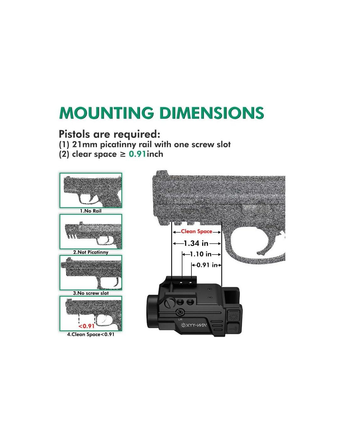 - Riel Picatinny de perfil bajo con tres agujeros para ajuste de posición de montaje: Elija uno de los tres agujeros que se adapte al riel de su pistola para instalar el tornillo. Nuestro combo de luz láser para pistola GL70 está diseñado para cualquier rifle o pistola con riel Picatinny o Weaver estándar, mejor ajuste con Taurus G2c G3C, Winchester, Remington, Colt, Glock, Sig Sauer, S & W, etc.