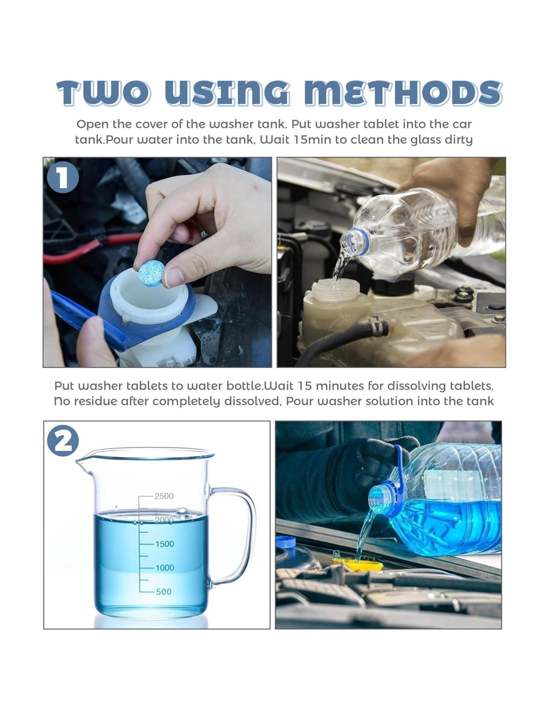 - [Fácil de Usar]: Simplemente coloca la hoja de limpieza del parabrisas del automóvil en el tanque de agua, agrega agua y espera de 15 a 20 minutos para comenzar a limpiar el parabrisas. Se disuelve completamente sin residuos, asegurando que tu sistema de limpieza no se obstruya.