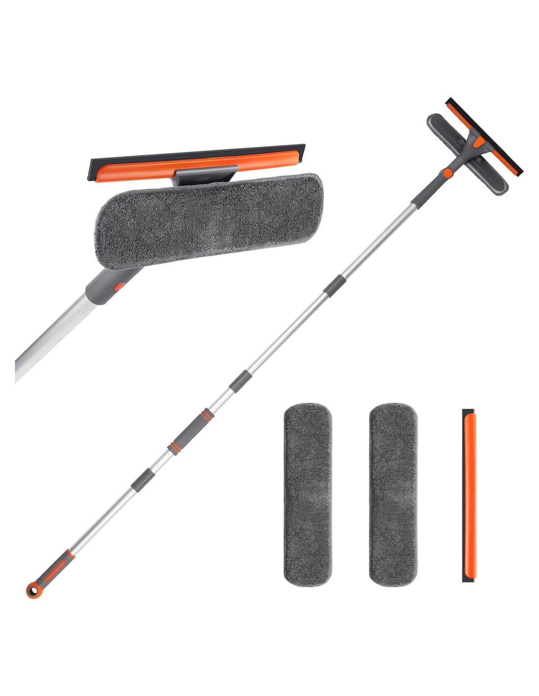 - [Kit de Limpiaparabrisas] El juego de limpiaparabrisas incluye 2 paños de microfibra, 4 varillas de extensión y 1 raspador de ventanas, adecuado para varios tamaños de ventanas. El mango de aluminio se puede ajustar añadiendo o quitando varillas de extensión.