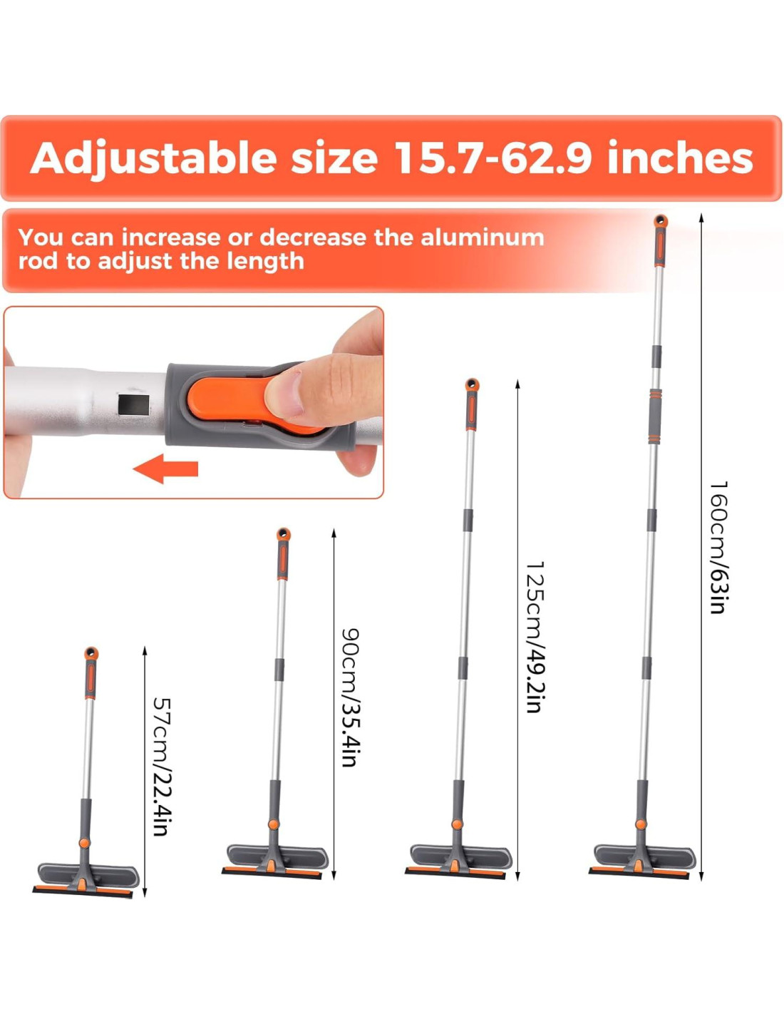 - [Amplia Aplicación] El limpiaparabrisas de mango largo ajustable es adecuado para limpiar una variedad de superficies, incluyendo puertas de baño, ventanas, automóviles, cristales de balcón, parabrisas, paredes de vidrio de oficinas, espejos y vehículos de camping.