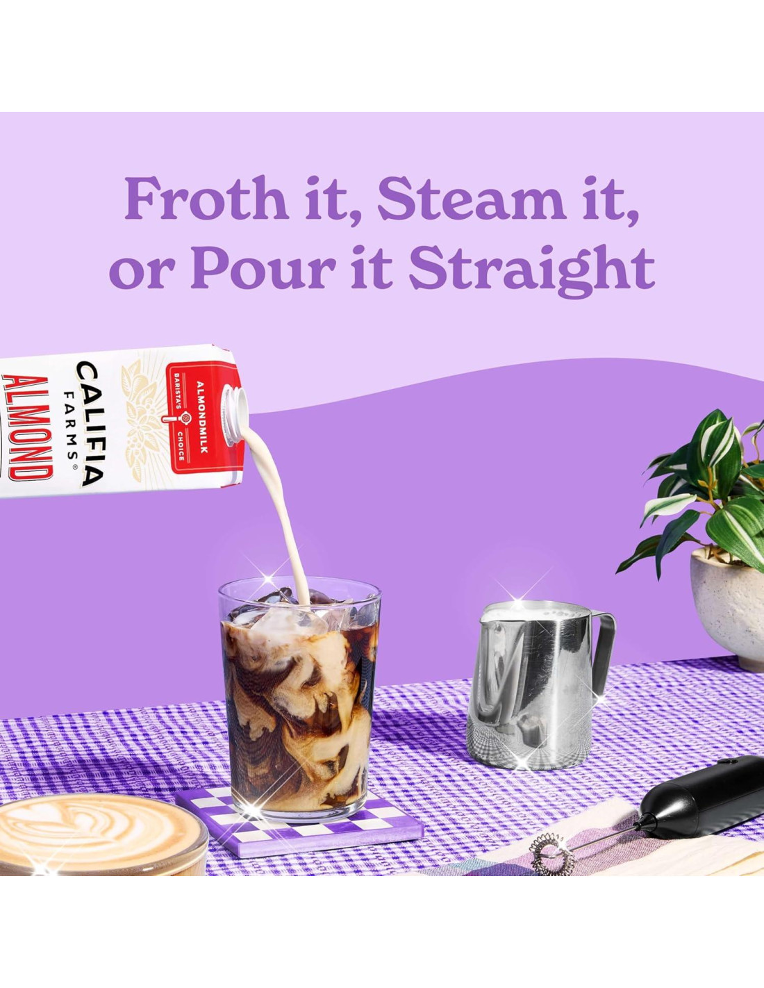 - LECHE LIBRE DE LÁCTEOS ELECCIÓN DEL BARISTA: Las Mezclas Barista de Califia Farms son preferidas por baristas profesionales en todo el país por su capacidad de espumar, calentar y formar arte latte