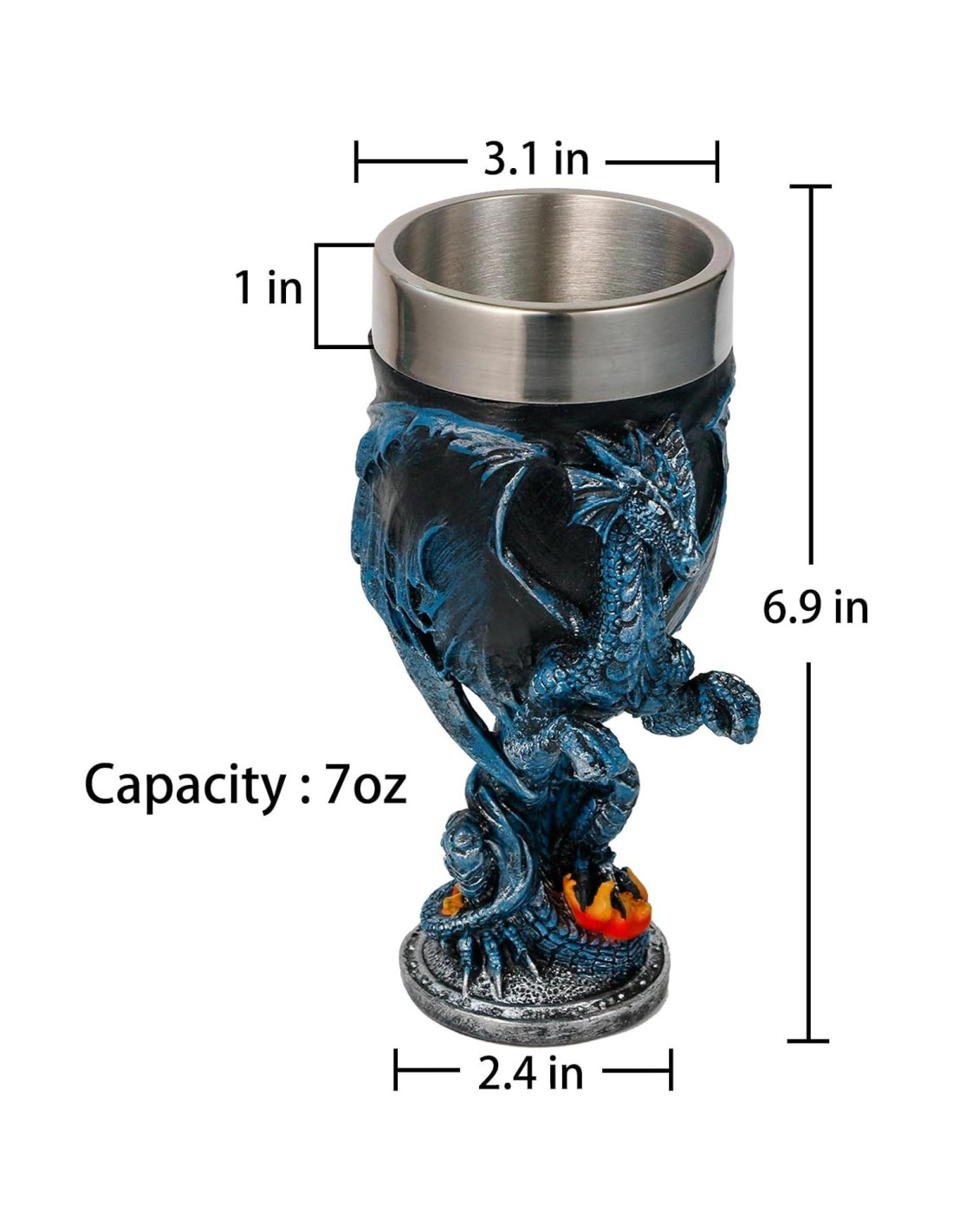 - CÁLIZ DE DRAGÓN AZUL MÍSTICO - Este cáliz de dragón mide 6.9" (17.53 cm) de alto, ancho de la taza 3.1" (7.87 cm) y puede contener hasta 7 onzas (207 ml) de tu bebida favorita. Bonitas tazas para usar durante noches de juego o una fiesta temática. También será una gran decoración para tu hogar, así como un cáliz funcional para tu uso diario.