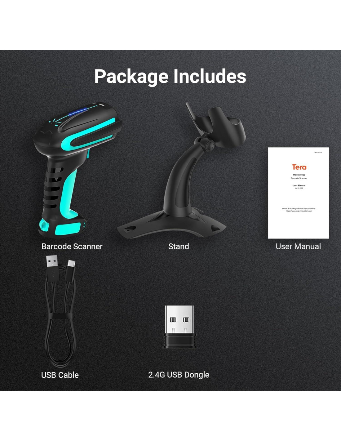 - ALERTA DE SONIDO POR VIBRACIÓN: El lector de código de barras Tera tiene dos modos de vibración y sonido. Cuando te molesta el sonido de "DiDi" de escaneo exitoso o requieres un entorno de trabajo silencioso, simplemente cambia la configuración a modo de vibración. Además, serás notificado por una alerta de vibración cuando un escaneo sea exitoso. [El paquete incluye] Escáner de código de barras x1, Soporte para escáner de código de barras x1, Cable USB x1, Dongle x1, Manual del usuario x1.