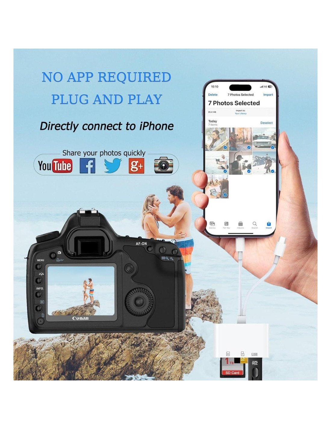 - Lector de tarjetas con interfaz USB C+Lightning: Accesorios de almacenamiento para equipos de fotografía digital como Canon/Nikon/Sony/Samsung/Kodak, convertidor de almacenamiento de memoria para iPhone, iPad pro/air/mini, Macbook, Mac