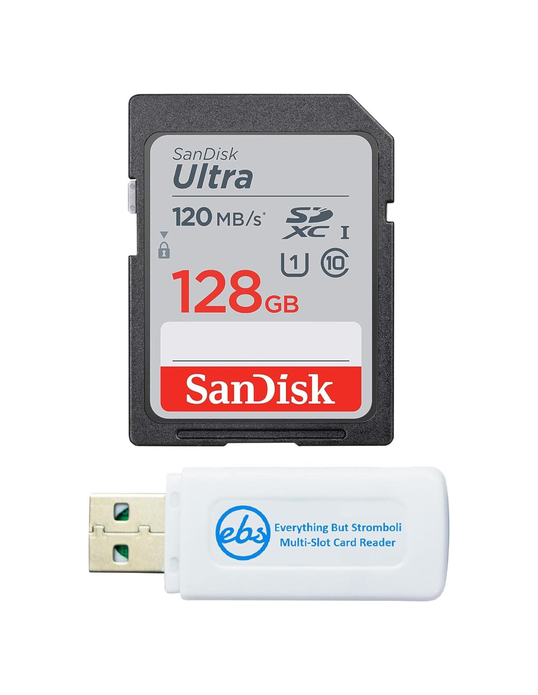 - El paquete incluye (1) Tarjeta de Memoria SanDisk 128GB Ultra 120MB/s y (1) Lector de Tarjetas Combo Everything But Stromboli - Incluye ranuras para SD, Micro SD, M2 y MS para una fácil transferencia
