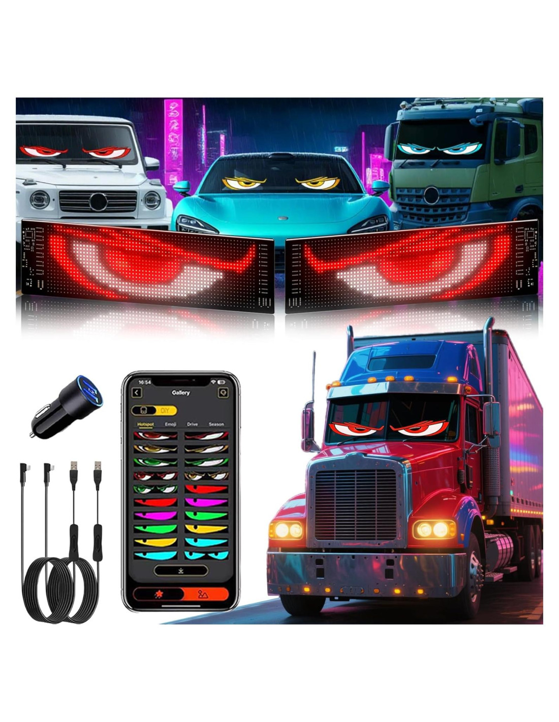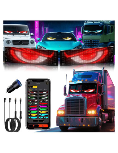 - [Señal LED Programable - Creatividad Personalizable a través del Control de App] ¡Desata tu creatividad con la app dedicada! Cambia entre luces de ojos del diablo para autos, preajustes de "ojo demoníaco", o sube gráficos/texto personalizados. Diseña ojos para animaciones DIY de autos o luces de ojos para efectos de autos, transforma tu vehículo en una obra de arte rodante con la tecnología de ojos LED para autos.