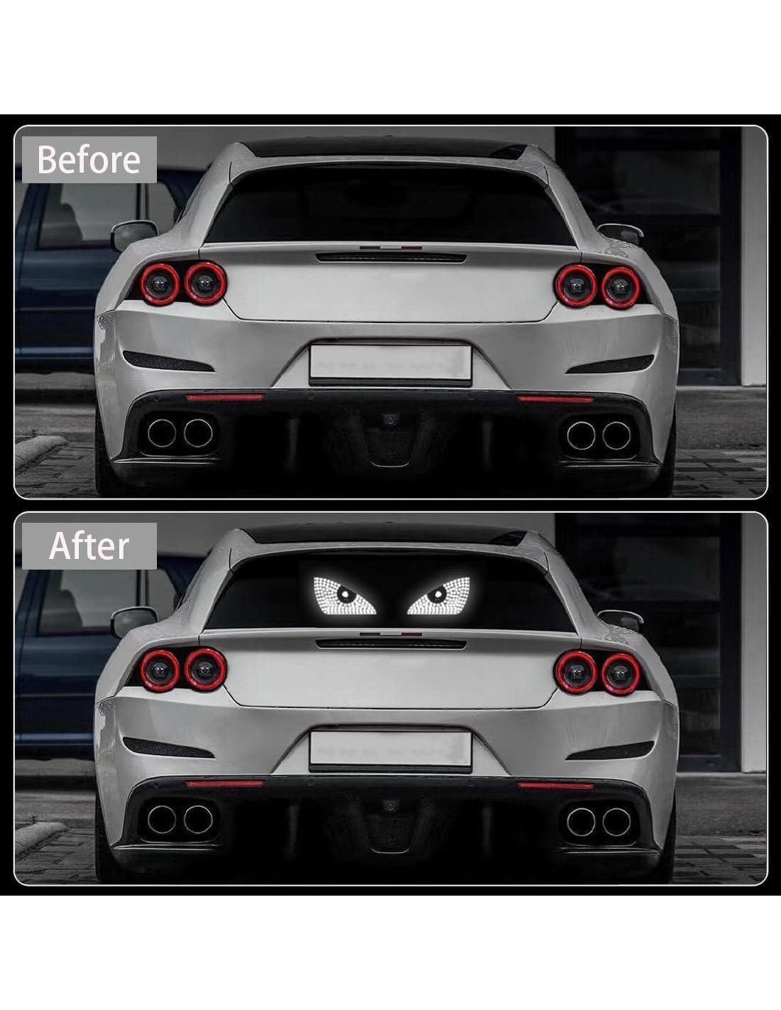 - Fácil Instalación: Simplemente limpie el área de instalación, luego pegue el adhesivo de doble cara en la luz LED ojos del diablo del auto, luego pegue la luz en la ventana del auto y presione para fijarla firmemente. El adhesivo se mantiene bien incluso en caminos irregulares.