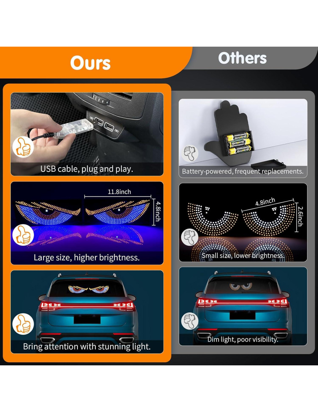 - Atrapa Miradas, Lidera el Grupo: ¡Destaca con estilo con la luz de ojos del parabrisas del auto! Ya sea que estés conduciendo por la carretera o estacionado en un lote, estos ojos ardientes mantendrán tu vehículo en el centro de atención. Dale a tu vehículo un aspecto feroz y único que exige atención y se hace notar. ¡Sé audaz, sé diferente!