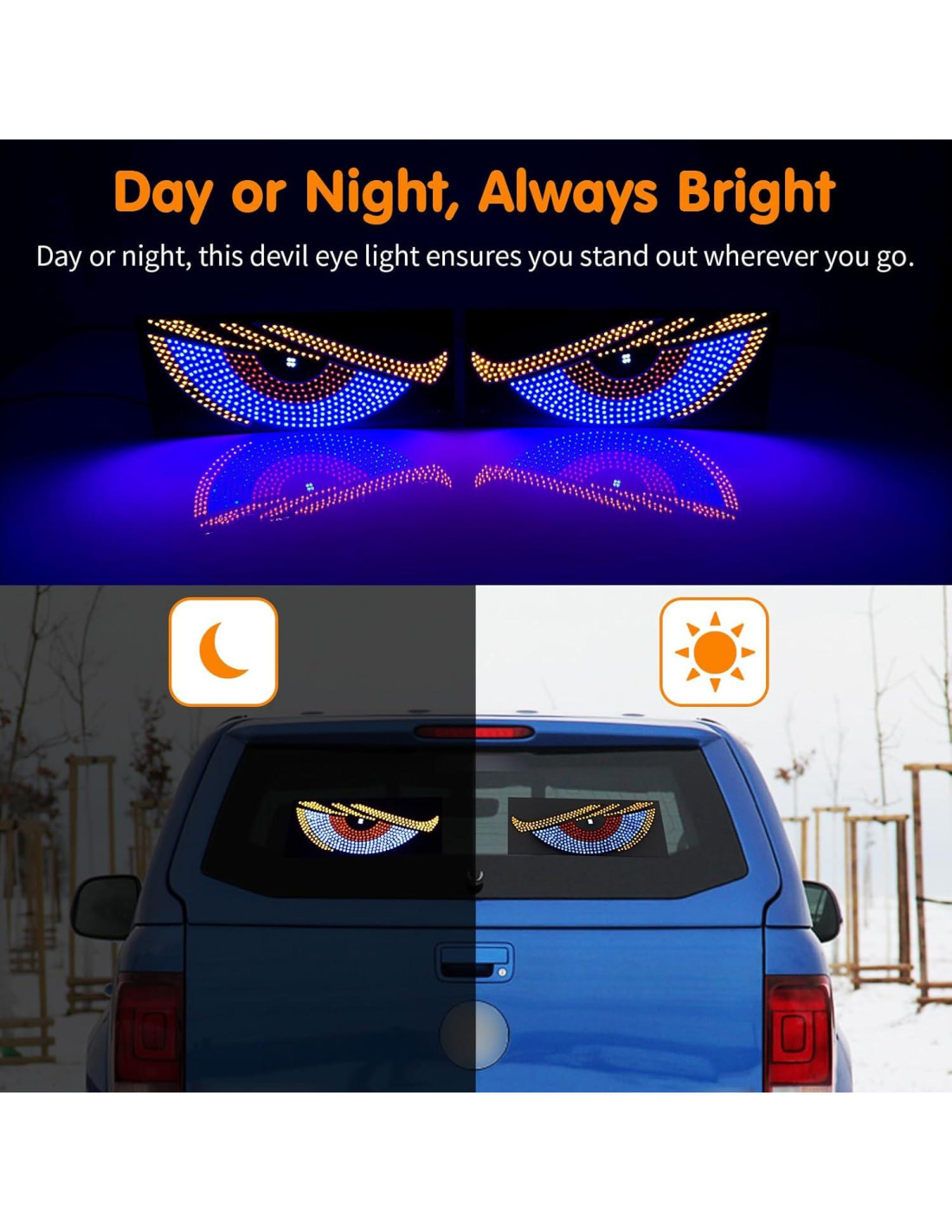 - Destaca, Mantente Seguro: Con cientos de chips LED, la luz de ojos del diablo para autos crea un brillo vibrante y llamativo que es visible de día o de noche, dando a tu auto un aspecto audaz mientras te mantiene seguro. Ya sea que estés en una calle concurrida de la ciudad o en una carretera oscura, esta luz de ojos del diablo asegura que los conductores se mantengan alerta y mantengan una distancia segura.