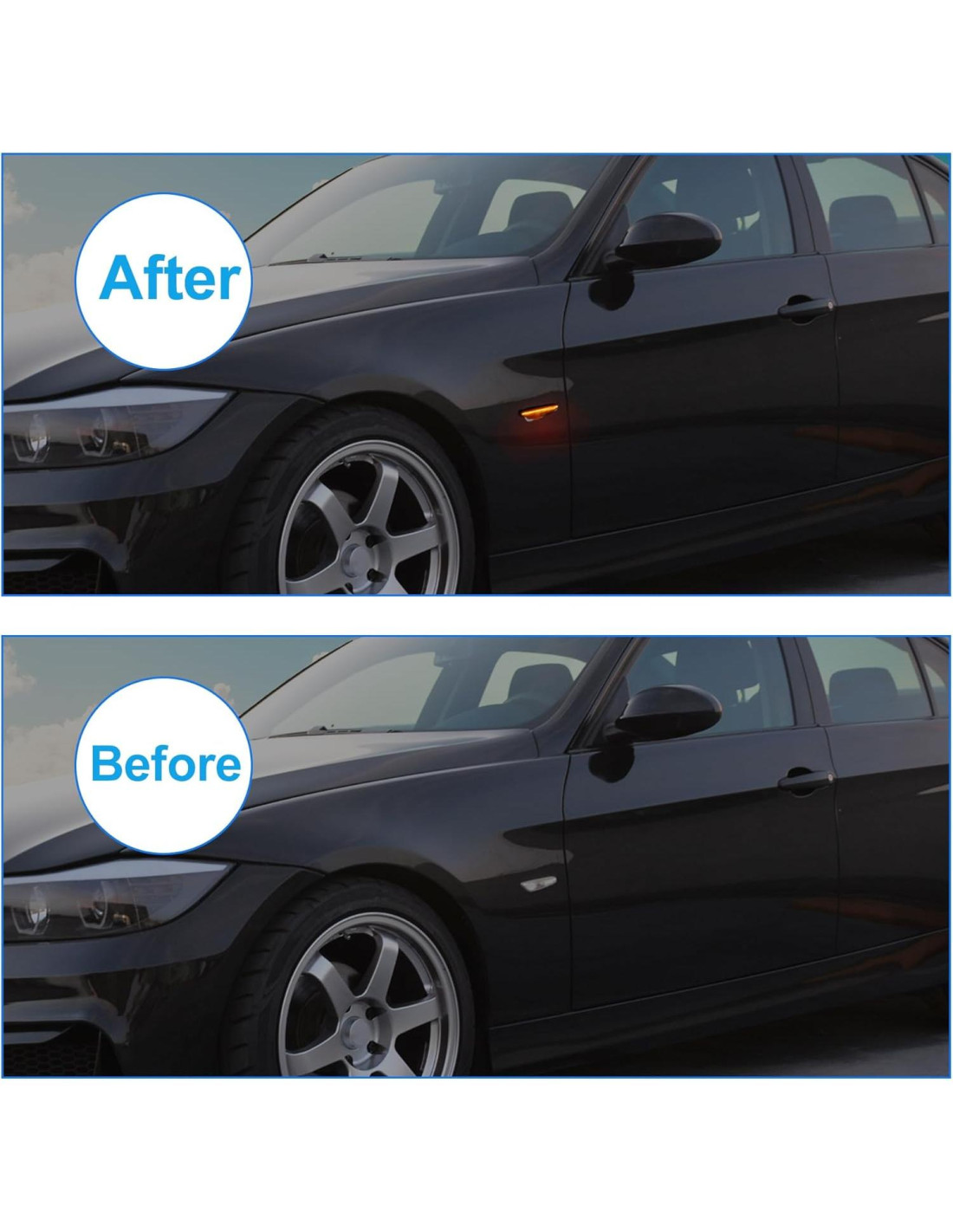 - Fácil Instalación: Plug and play, no se requiere corte ni perforación, reemplazo directo de las luces de señal de giro laterales originales, simplemente retira la carcasa original y conecta el nuevo enchufe de luz al socket. Enciende sin demora, y la función original del automóvil no se cambia.