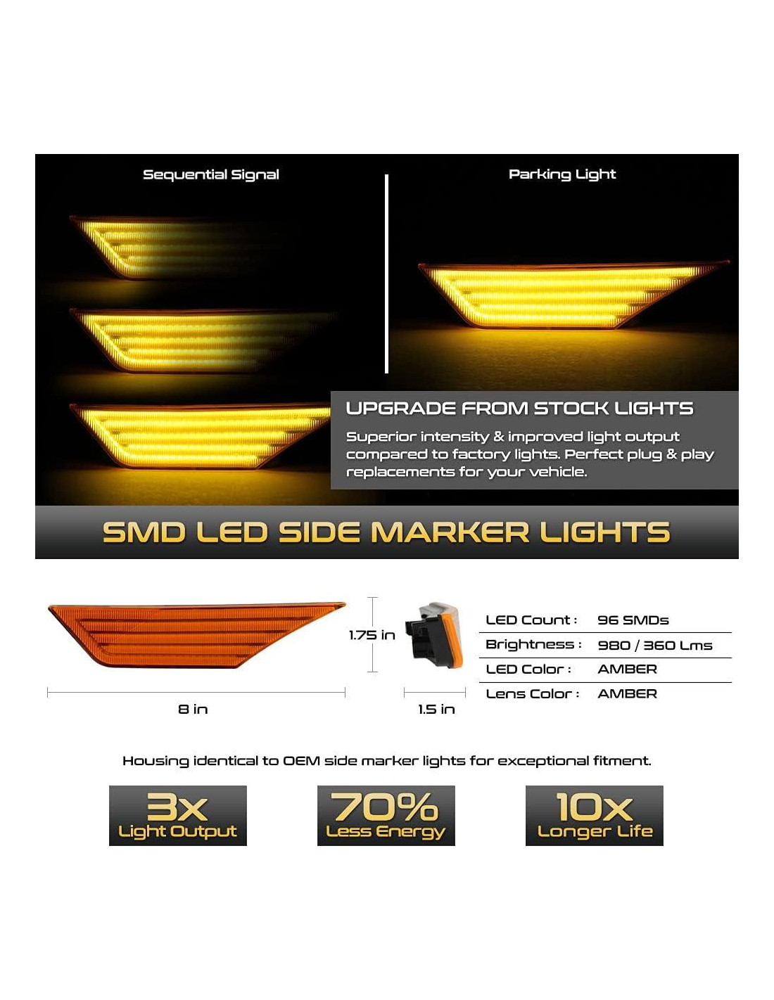 - [Señal de Giro Secuencial Dinámica Ámbar] - Diseñada para ser Visualmente Impactante y Mejorar la Visibilidad