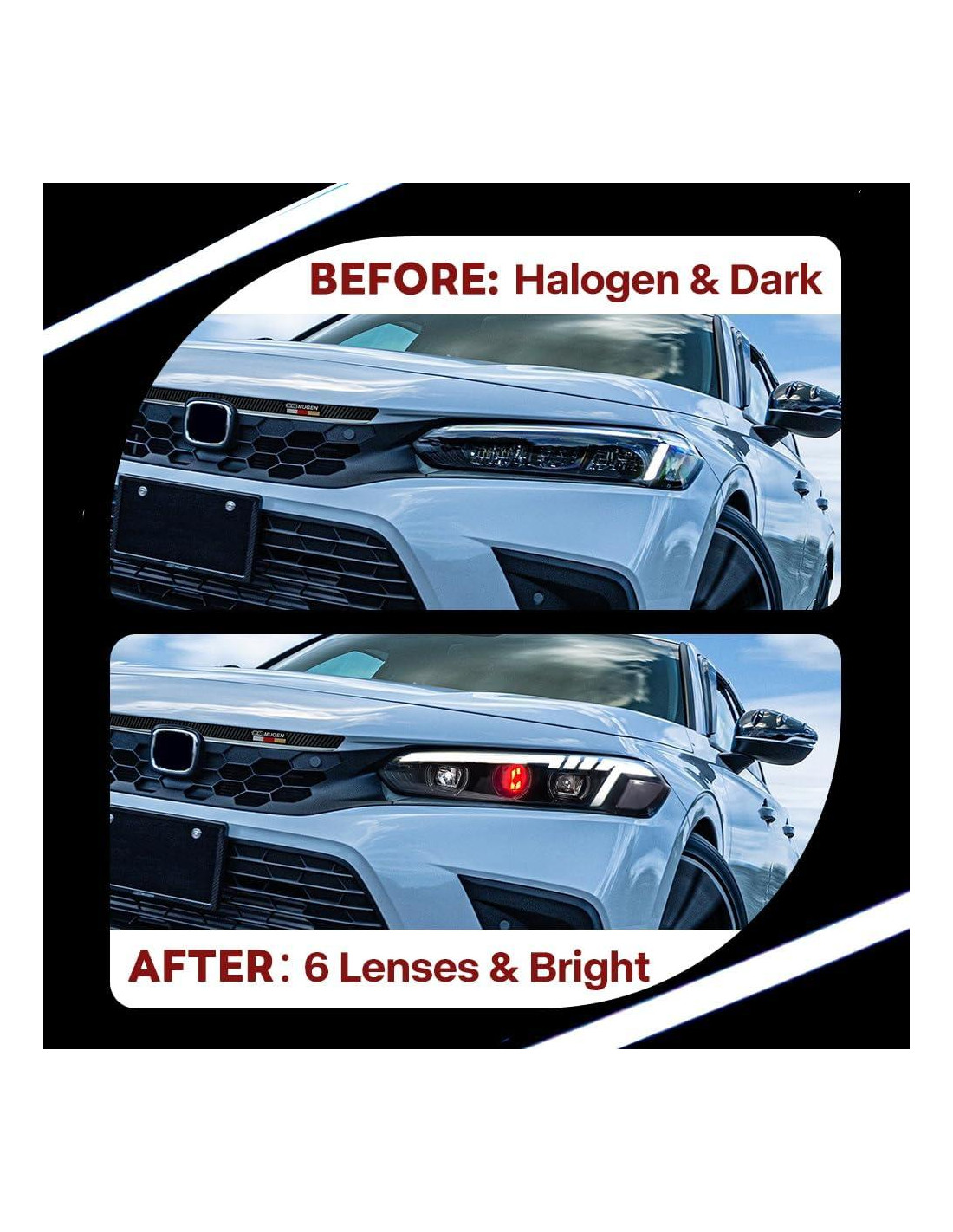 - Característica especial: Todo en 1 Función (Animación Azul/DRL/Señal de Giro(amarillo)/Alto y Bajo Haz), Perlas de Iluminación Más Brillantes, A Prueba de Polvo, Cambio Multimodo y Gran Mejora para Civic, Enchufar y Usar y Mayor Vida Útil del Producto, Impermeable