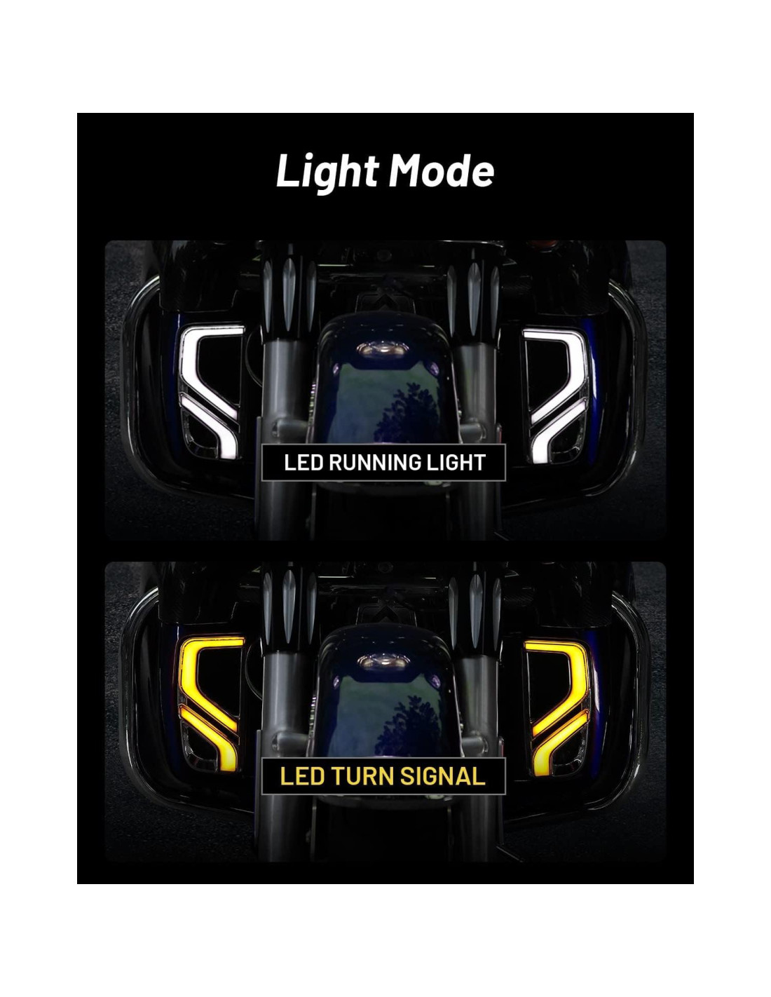 - Iluminación Adicional: Luces de funcionamiento blancas de alta intensidad con señal de giro ámbar proporcionan mayor brillo y un rango de iluminación más amplio, para que pueda ver mejor las condiciones de la carretera y mantenerse más seguro durante la conducción