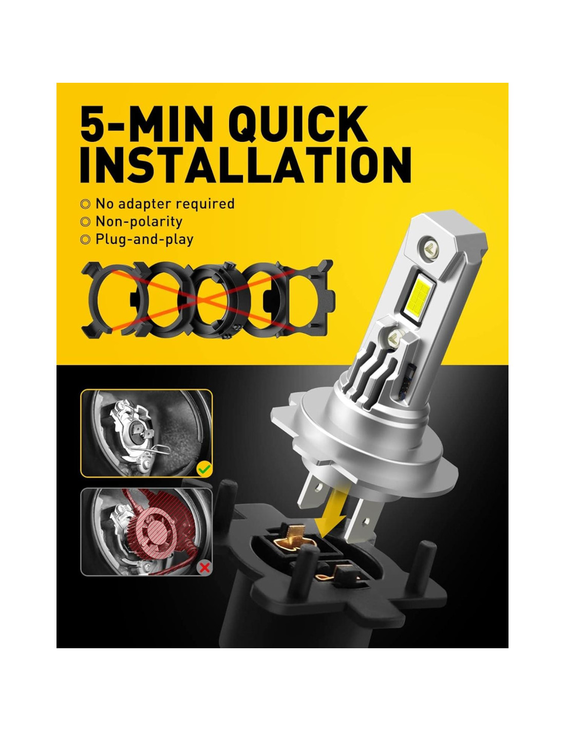 - Disipación de Calor Eficiente, Más de 50,000hrs de Vida AUXITO h7 LED adopta el último diseño de enfriamiento de tres etapas, todo el cuerpo de la lámpara de aluminio de aviación, disipador de calor hueco y potente ventilador de enfriamiento, logrando 50,000 horas de iluminación continua, despídete del problema del reemplazo frecuente de bombillas.