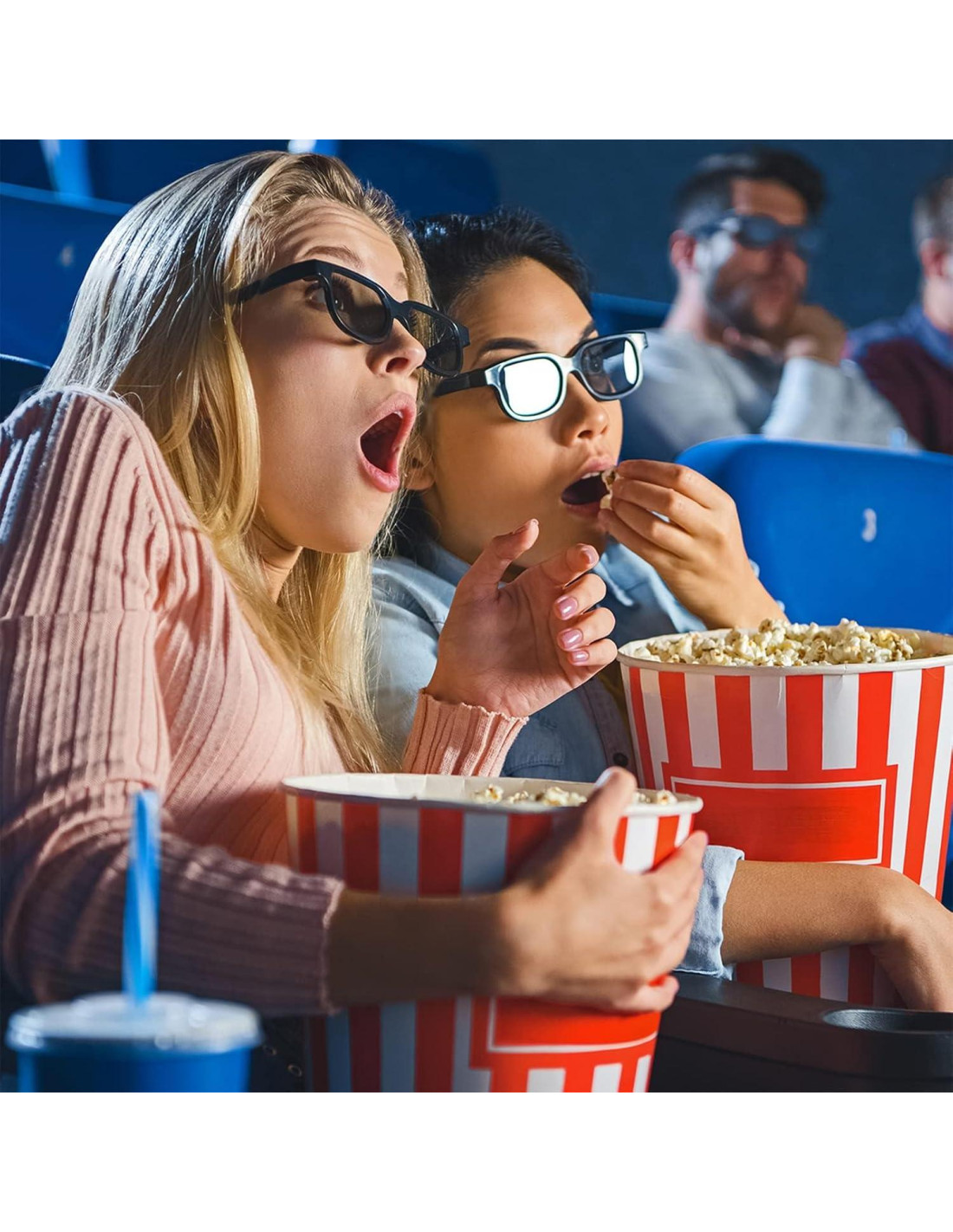 - [Mejor Experiencia 3D] Las gafas de película 3D en los cines son gafas públicas, la higiene no se puede garantizar. Y ser usadas por personas durante mucho tiempo puede causar daños a las lentes afectando la visualización de imágenes 3D. Traer tus propias gafas puede brindarte una experiencia más cómoda.