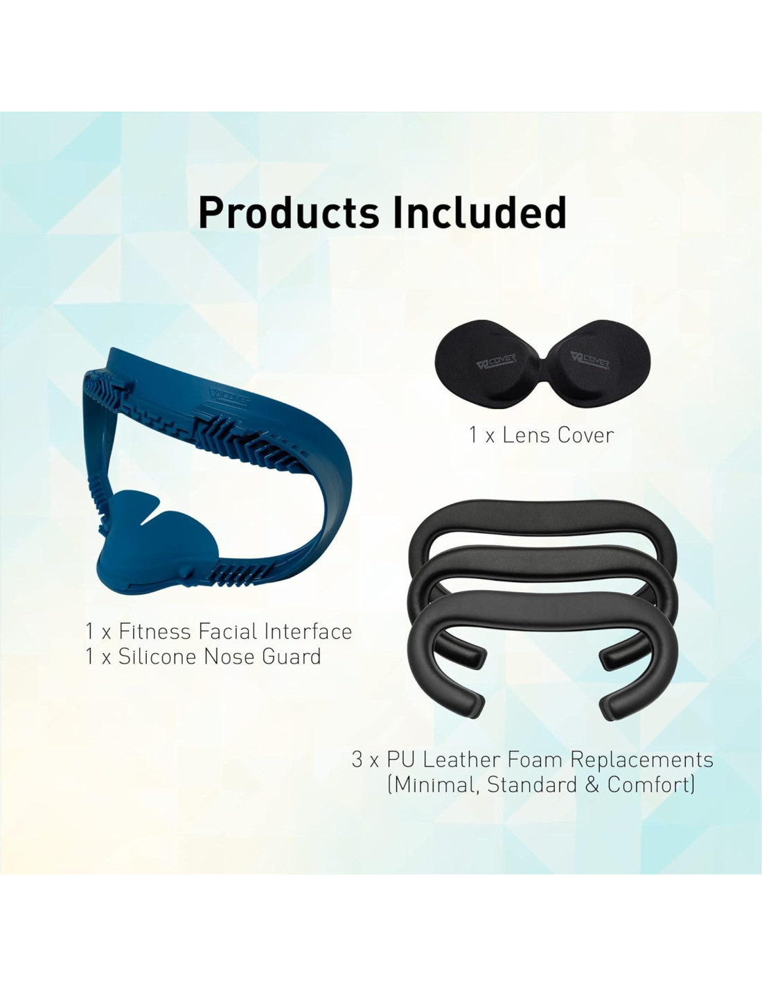 - 6 accesorios de VR para Oculus/Meta Quest 2: Interfaz Facial, Reemplazos de Espuma Minimal, Standard y Comfort, Protector de Nariz y Funda de Lentes