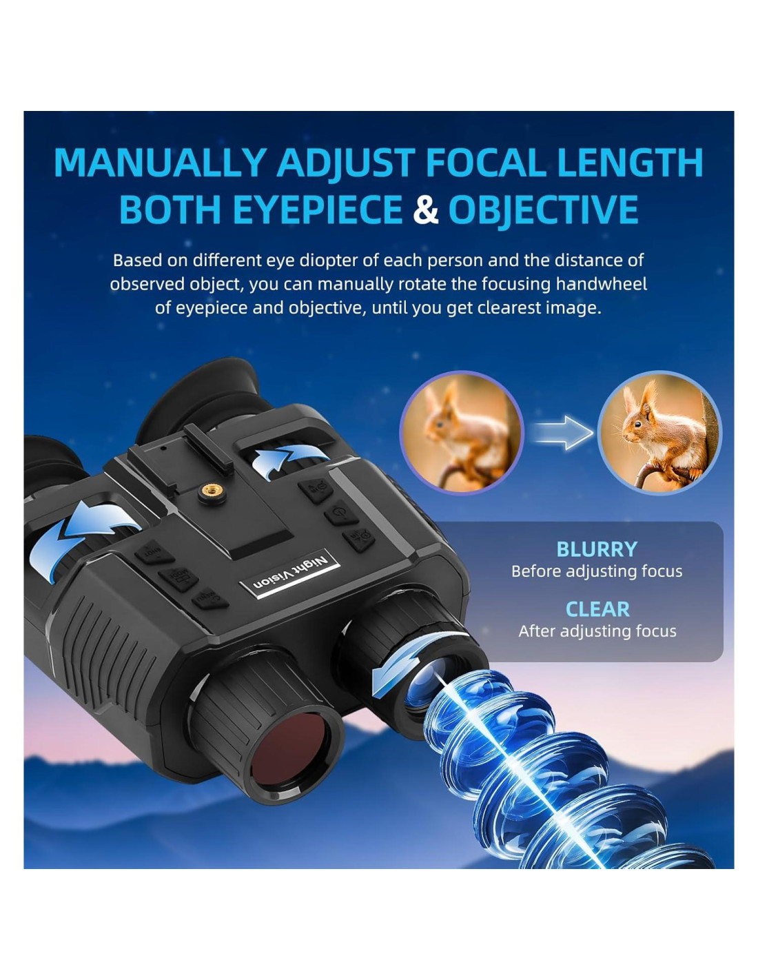 - [Rango de Visión Nocturna Efectivo de 980FT y Aumento Ajustable] Aumento digital de 7X con ajuste individual de dioptrías +/-3 acomoda a usuarios de -3.0 a +3.0 error refractivo. Cambie instantáneamente entre modos de pantalla individual/dual. El control de brillo IR de 7 niveles asegura visibilidad óptima de 656FT a 984FT en un entorno de luna llena. Bien adecuado para rastrear vida silvestre u observar cuidadosamente su entorno cuando se involucra en actividades de observación nocturna o operaciones de patrullaje.