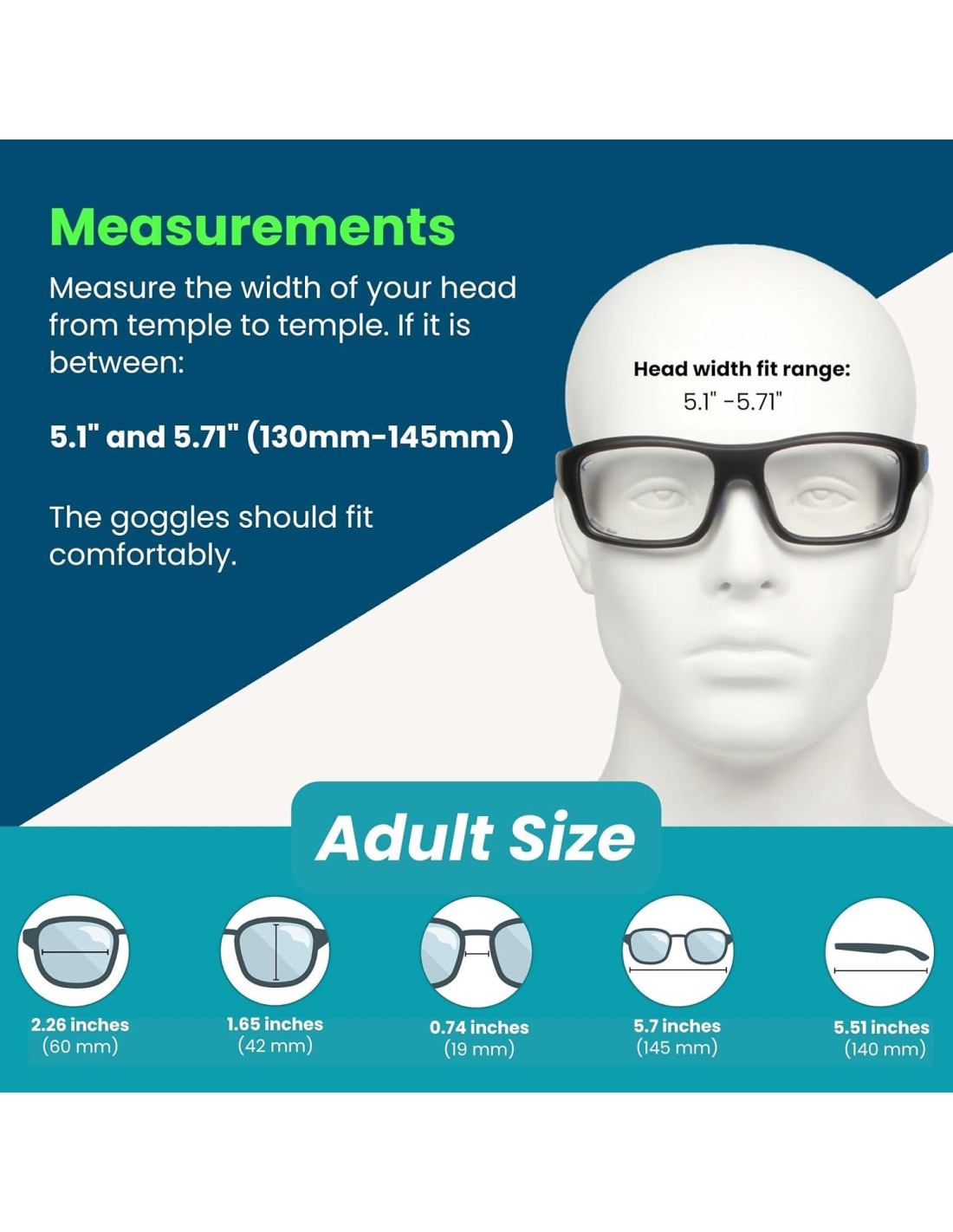 - Ajuste Cómodo y Ajustable - Almohadillas nasales de silicona suave que proporcionan comodidad durante todo el día. Viene con una correa de velcro ajustable para asegurar el marco a tu cabeza. IMPORTANTE: Por favor, verifica cuidadosamente el tamaño para asegurar un ajuste adecuado antes de ordenar. Las dimensiones del marco son grandes y diseñadas para adultos: Ancho de lente: 62mm (2.44in), ancho del puente: 19mm (0.75in), ancho de templo a templo: 136mm (5.35in). No apto para tamaños de cabeza pequeños.