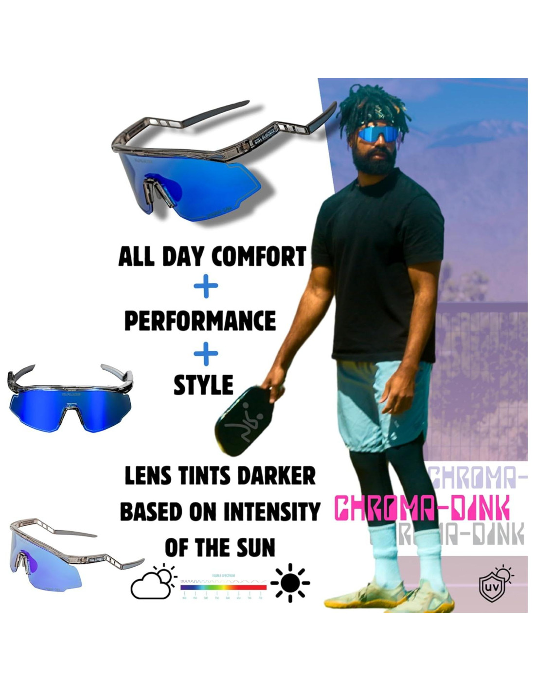 - AJUSTE DE RENDIMIENTO PREMIUM: Estas gafas están diseñadas para mantenerse en su lugar mientras juegas al pickleball, incluso durante los partidos más extremos.