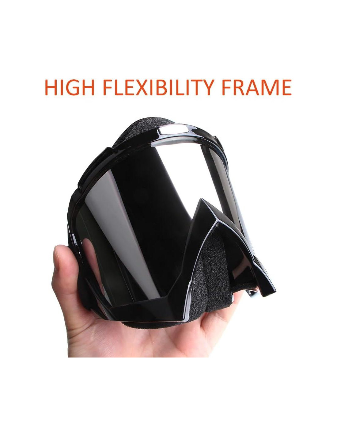 - Material Suave y Flexible El marco de TPU de alta calidad hace que nuestras gafas de montar tengan una excelente resistencia y elasticidad. La lente de PC tiene propiedades anti-empañamiento, anti-rayado, a prueba de viento, a prueba de polvo y super resistencia al impacto para proteger tus ojos de forma segura en cualquier deporte al aire libre.