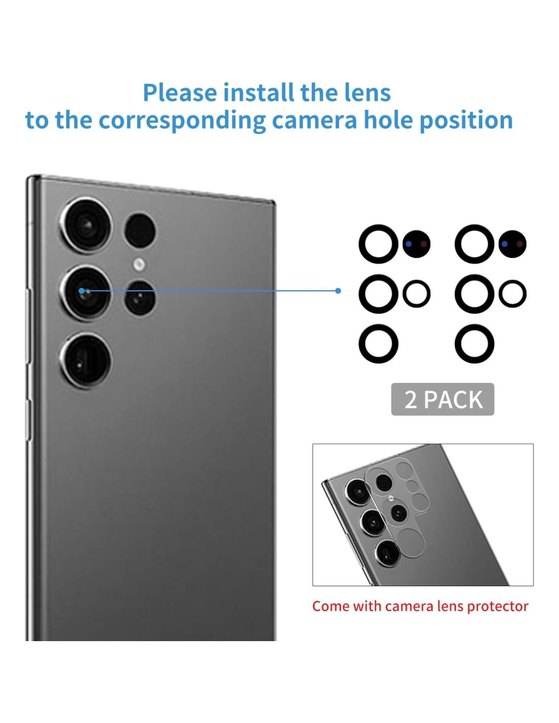 - Compatible Perfectamente El lente de cámara trasera es solo compatible con S24 Ultra SM-S928B, SM-S928B/DS, SM-S928U, SM-S928U1, SM-S928W, SM-S928N, SM-S9280, SM-S928E, SM-S928E/DS. El kit de reemplazo de lente de cámara incluye 2 paquetes de cristal de lente con adhesivo preinstalado, uno de ellos es un repuesto.