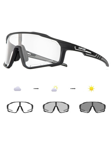 - Gafas de Ciclismo Fotoquímicas Las gafas de sol fotoquímicas cambian de color según las condiciones de luz, pasan de ser claras a azules bajo la luz solar, protegiendo efectivamente tus ojos mientras proporcionan una experiencia de visualización cómoda. No es necesario cambiar de gafas.